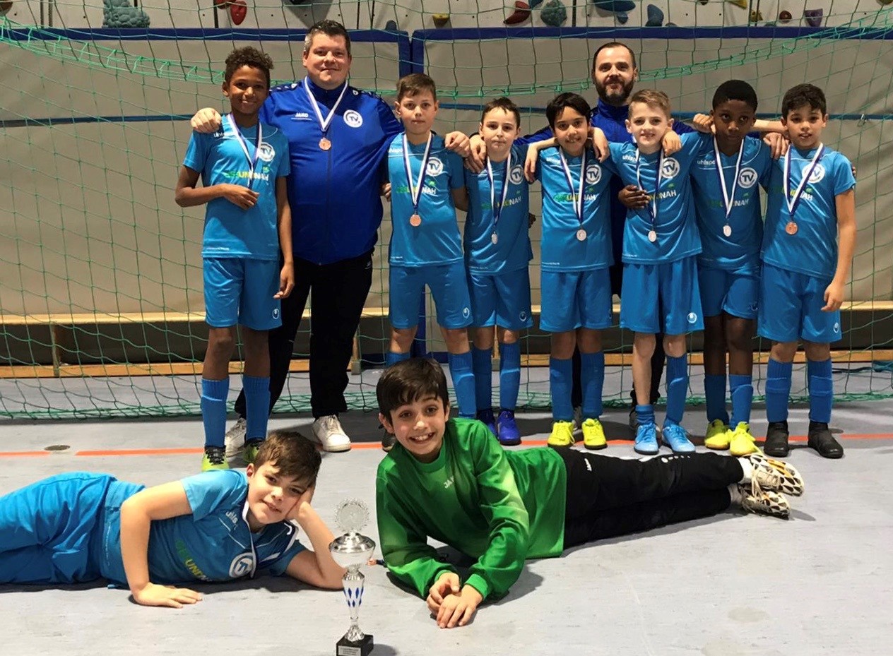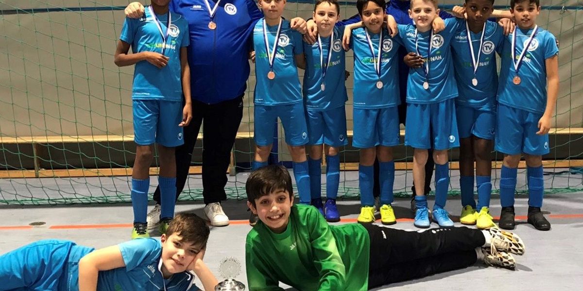 Auch in diesem Jahr trat die E-Jugend voller Freude und Motivation mit zwei Mannschaften an. Der zweiten Mannschaft gelang es in ihrem ersten Spiel mit 3:0 zu gewinnen und somit hatte sie einen super Start in das Turnier. In den folgenden drei Gruppenspielen konnte die Mannschaft nicht diesen positiven Trend fortsetzen und schied in der Vorrunde als Gruppendritter aus dem Turnier aus. Die erste Mannschaft startete nicht Optimal in das Turnier. Mit jeweils einem Unentschieden konnte die erste Mannschaft nur zwei Punkte aus den ersten beiden Gruppenspielen erkämpfen. Um die Vorrunde zu überstehen war ein Sieg im dritten Spiel zwingend notwendig. Nun hieß es gegen die stark spielende Mannschaft vom TV Zazenhausen anzutreten. Voller Motivation standen sie am Anstoßpunkt und warteten auf den Anpfiff. Als dieser dann erfolgte, explodierte die erste Mannschaft der E-Jugend regelrecht und dominierte das Spiel. Mit einem 4:1 gewannen sie das Spiel und erhöhten somit die Chancen weiterzukommen deutlich. Um jedoch auf der sicheren Seite zu sein mussten sie auch ihr viertes Spiel gewinnen. Mit dem Elan und der Motivation aus dem vorhergehenden Spiel konnten sie auch im letzten Spiel dominieren und mit 7:0 gegen den TSV Schmiden drei Punkte ihrem Konto zuschreiben. Es war nun geschafft, als Tabellenzweiter waren Sie nun für das Halbfinale qualifiziert. Jetzt war das Motto „Finale“. Aber vorher musste erst das Spiel gegen den FV Kirchheim bestritten werden. Beide Mannschaften haben alles gegeben und um jeden Ball gekämpft. In letzter Minute gelang dem TVC der Ausgleich. So spannend wie das Spiel ging es im Elfmeterschießen weiter, wobei sich der TVC das Elfmeterglück auf seine Seite ziehen konnte und das Elfmeterschießen für ich entscheiden konnte. Geschafft!!! Finale, jetzt hieß es noch einmal 9 Minuten kämpfen, um als Sieger aus dem Turnier zu gehen. Der Schiedsrichter pfiff das Finale an! Die Halle tobt und von der Stimmung her war mit jedem Bundesliga-Spiel konkurrenzfähig. Der VfB Obertürkheim startet solide und stellt dem TVC vollen Einsatz entgegen. Es ging hin und her und erst kurz vor Schluss schafft der TVC den Ausgleich, sodass es ein weiteres Mal hieß „Elfmeter schießen“. Beide Mannschaften stellten ihre Schützen und traten nacheinander an, leider schaffte es der TVC nicht, erneut aus einem Elferkrimi als Sieger hervorzugehen. Am Ende geht die erste Mannschaft mit einem hart erkämpften und verdienten 2.Platz aus dem Turnier hervor.