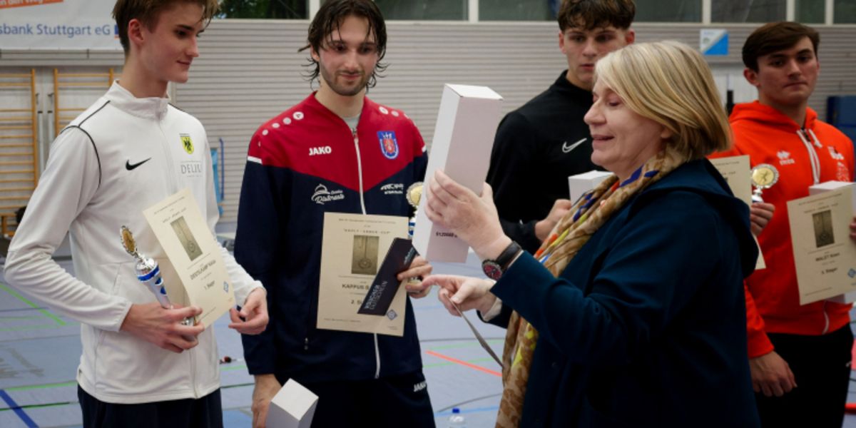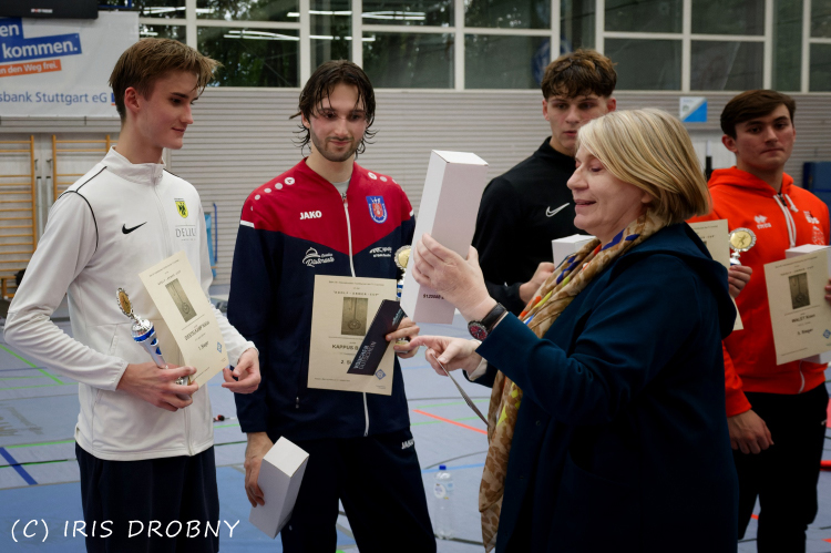 Nach einem sehr gut organisierten Turnierverlauf der Fechtabteilung des TV Cannstatt gewinnet Niklas Diestelkamp (KTF Luitpold München) das hochspannende Finale gegen Bastian Kappus (FC Tauberbischofsheim) mit 14:15. Die dritten Plätze gingen an Hugo Valiere (Frankreich) und Linus Schulz (OSC Potsdam).