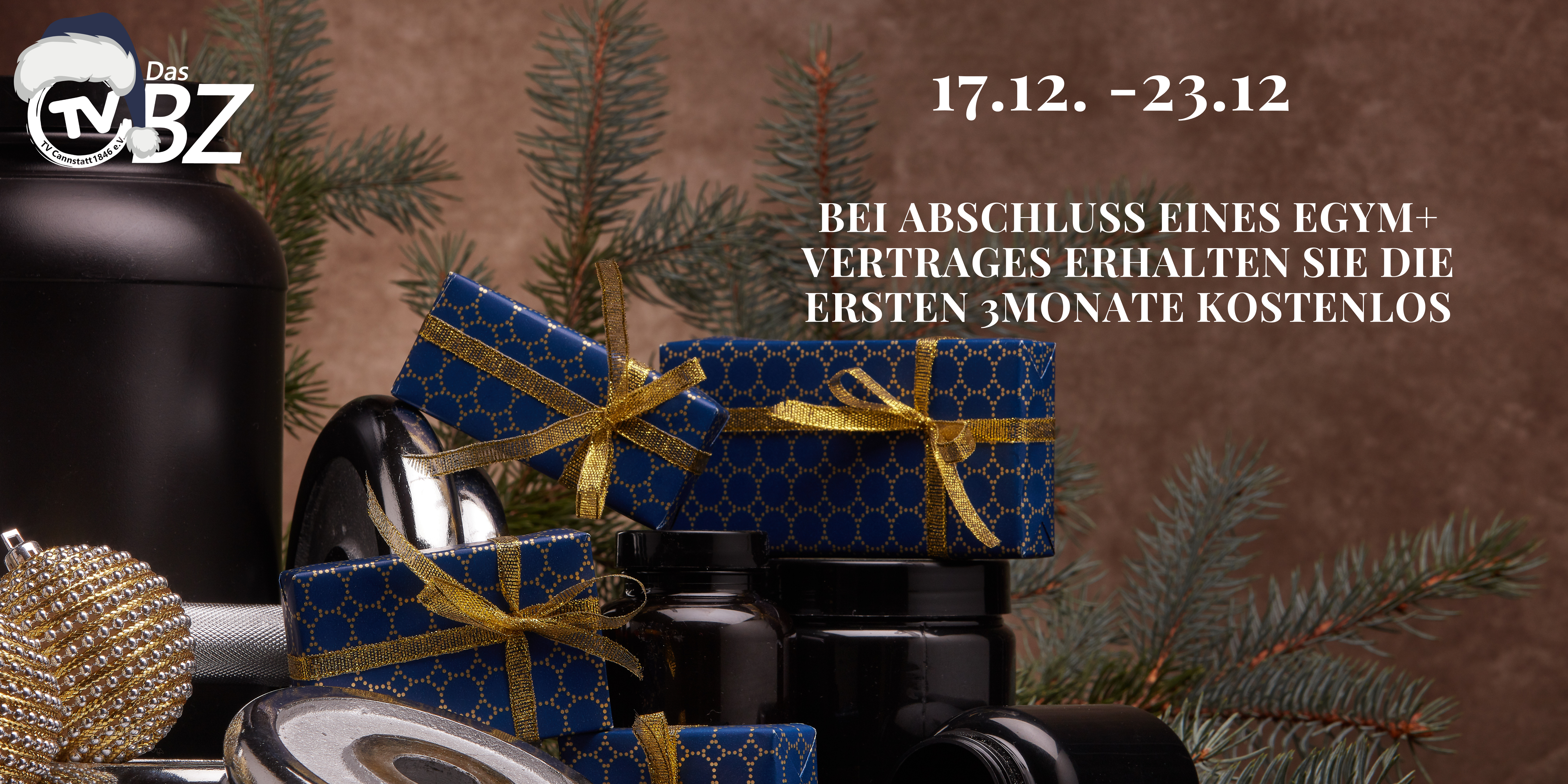 Starte in die Adventszeit mit Schwung! Bei Abschluss eines Vertrages in dieser Woche sind die ersten 30 Tage komplett kostenlos*. Eine fantastische Möglichkeit, unser Angebot unverbindlich kennenzulernen. *Nur in Verbindung mit einer tvc Mitgliedschaft möglich.