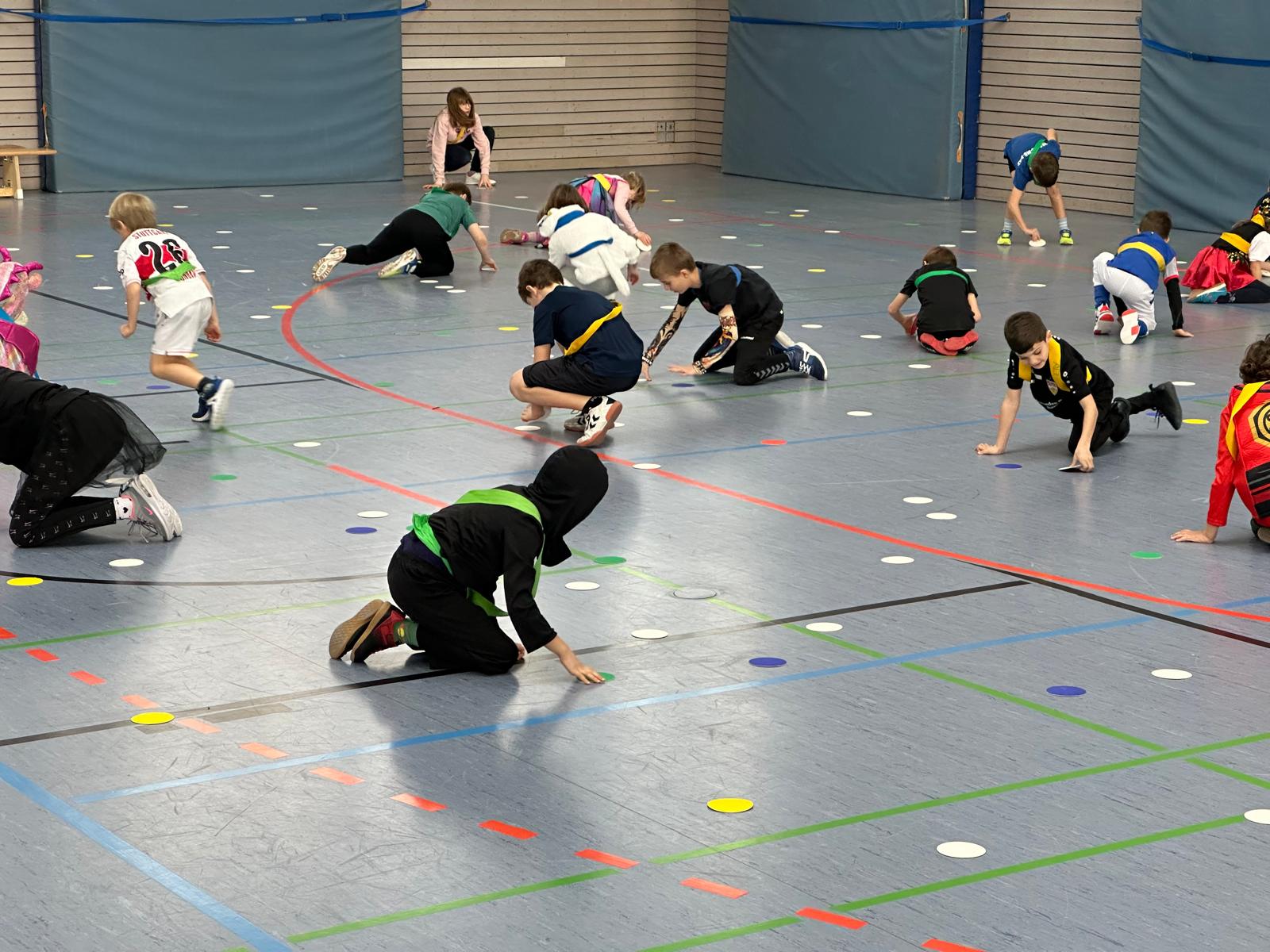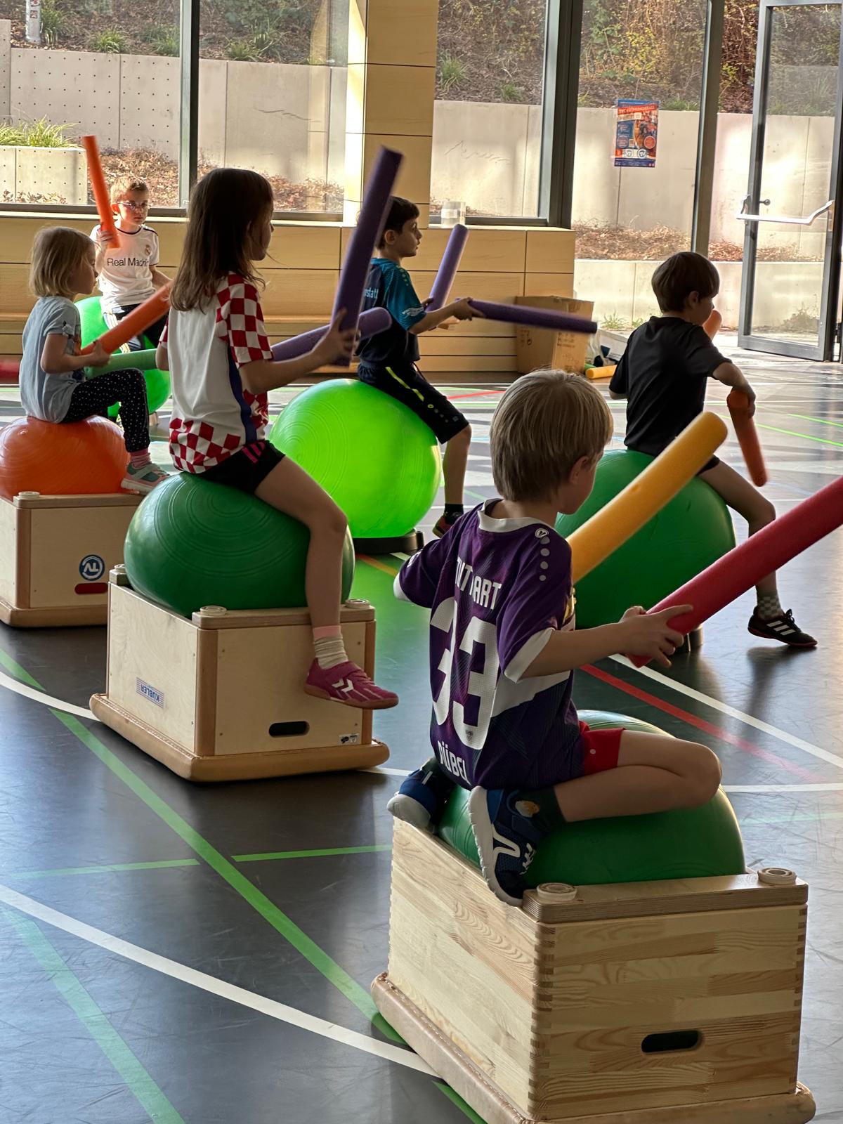 Ein weiteres Erlebnis war der Besuch von Volker der Abteilung „Repicando“, der sich einen ganzen Vormittag Zeit nahm, um mit den Kindern Drums & Sport zu machen. Die Kinder waren voll in den Bann gezogen, und die Turnhalle bebte förmlich, als sie mit viel Energie und Begeisterung gemeinsam musizierten und sich gleichzeitig sportlich betätigten.