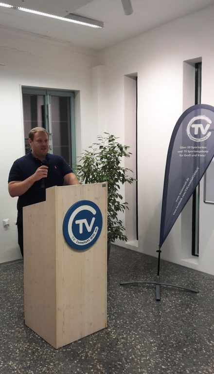 Dominik Benedix, Abteilungsleiter der Cheerleading-Abteilung des TV Cannstatt „TVC Allstars“ berichtete insbesondere über die Erfolge der vergangenen Jahre der Cheerleader. Das Jubiläum der TVC Allstars wird am 15.12.2018 ab 17.00 Uhr gebührend gefeiert. Hierzu lud Benedix in die TVC Sporthalle herzlich ein. Ganz nach dem Motto „White & Blue“ erwartet die Gäste ein spannendes Programm, kreative Attraktionen und ein reichhaltiges Büffet- und Barangebot. Apropos! Das Buffet ist nun eröffnet – mit diesen Worten schloss Dominik Benedix seine Rede ab.
