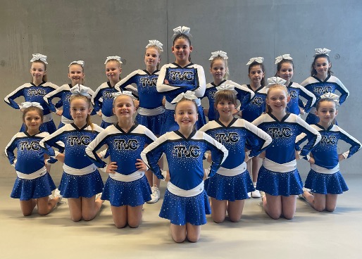 Die TVC Allstars strahlen in ihrer umwerfenden neuen Uniform und sind bereit, sich mit Style und viel Glanz auf Wettkämpfen zu präsentieren.
