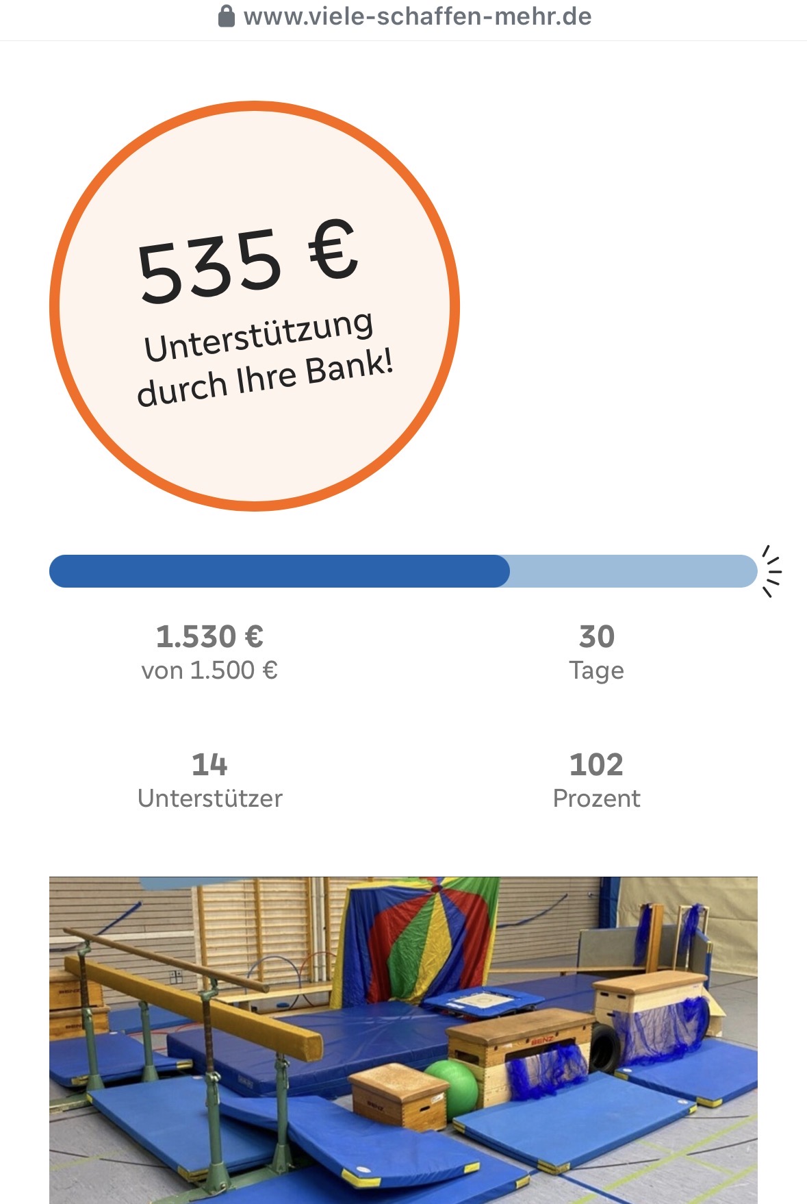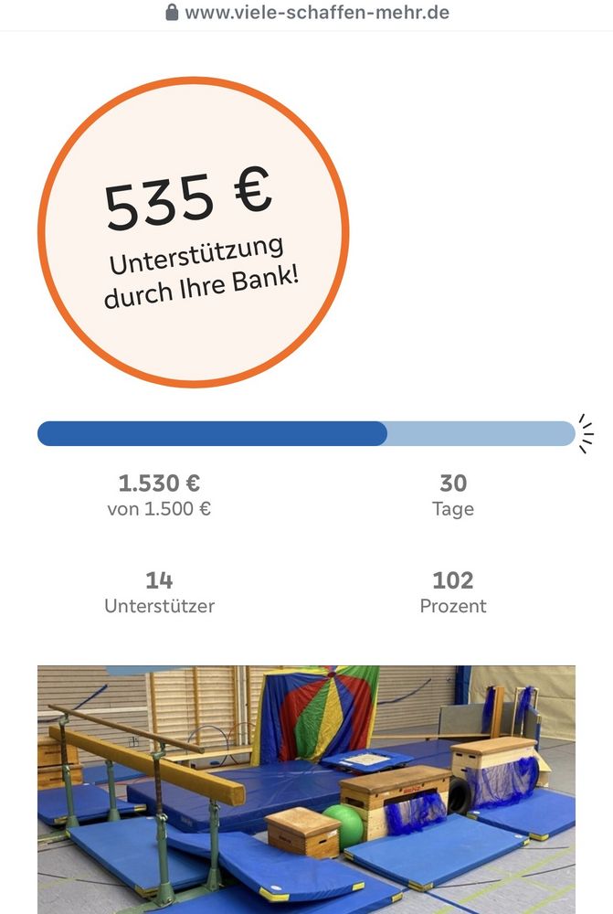 Das Projekt läuft noch bis zum 31.10.2025 und es kann immer noch gespendet werden, jedoch ist jetzt schon sicher, dass wir das Geld für die Sportgeräte bekommen.