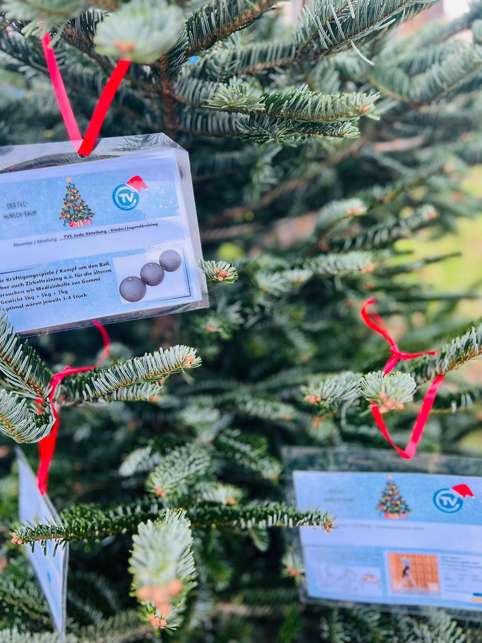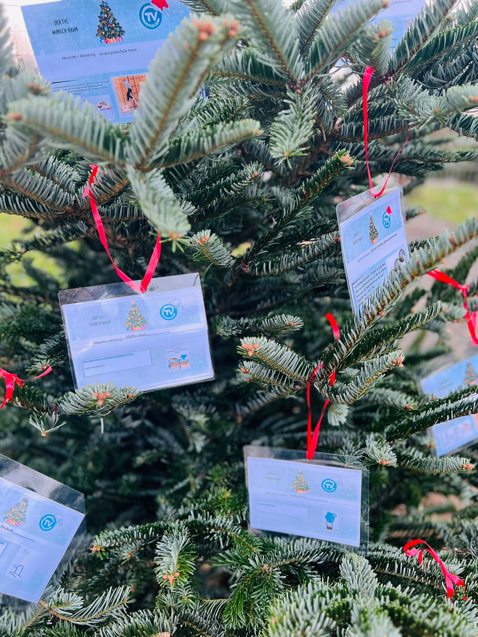 Die Abteilungen, Sportgruppen sowie die Kindersportschule move haben ihre Wünsche zusammengetragen und auf festlichen Wunschkarten am Baum aufgehängt. Der Wunschbaum steht am Eingang des TVC-Geländes beim Christbaumverkauf am Schnarrenberg und ist für alle zugänglich.
