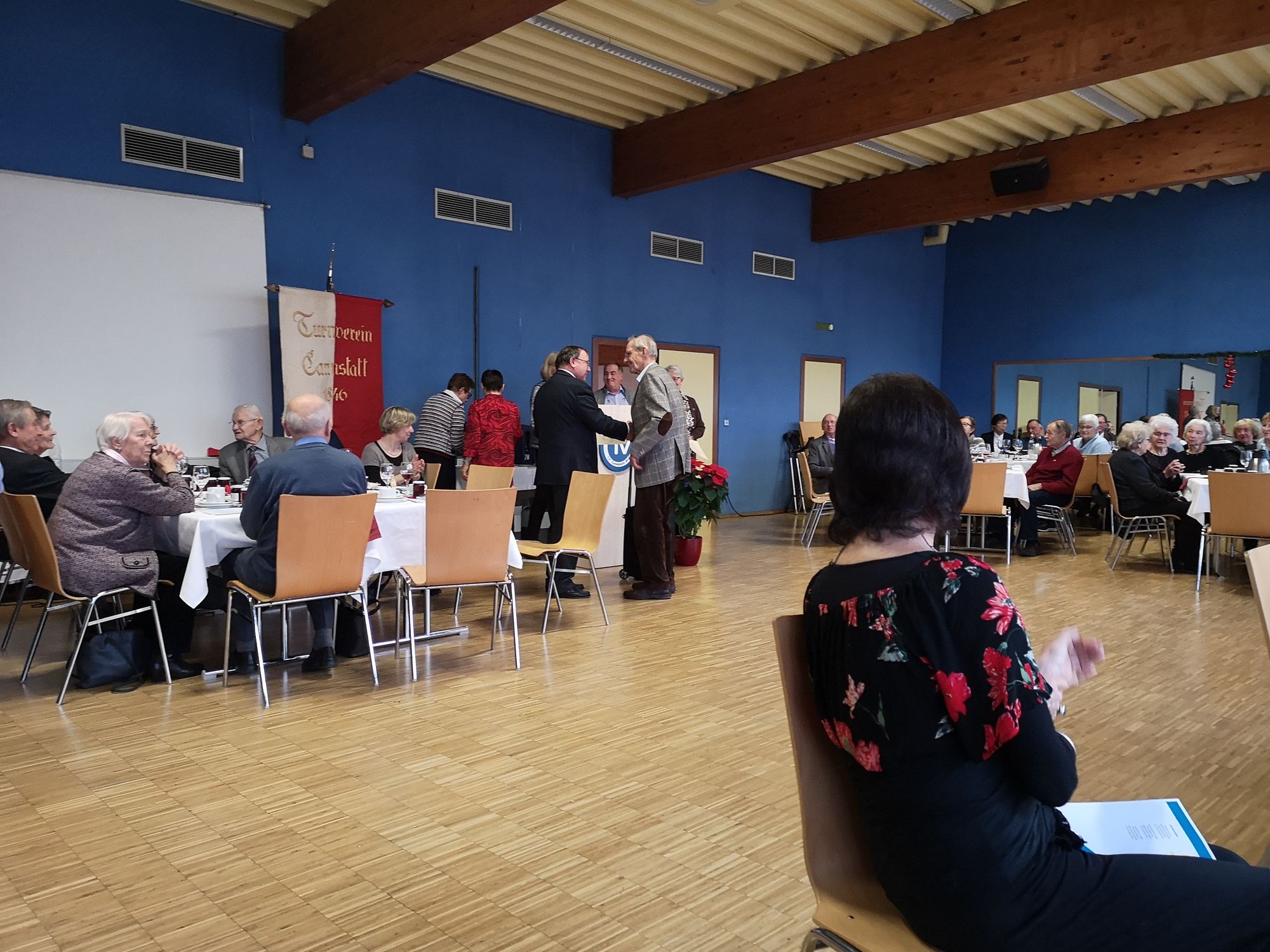 Bei den festlichen Stunden des Turnverein Cannstatt am 1. Advent, herrschte auch festliche Stimmung in dem weihnachtlich geschmückten Saal auf dem Schnarrenberg, den die Damen des Ehrenrats liebevoll vorbereitet hatten. Durch das von den Damen des Ehrenrats Doris Strohmaier und Lore Greter gestalte Programm, führte die Vorsitzende des Ehrenrats Rose Brosch.