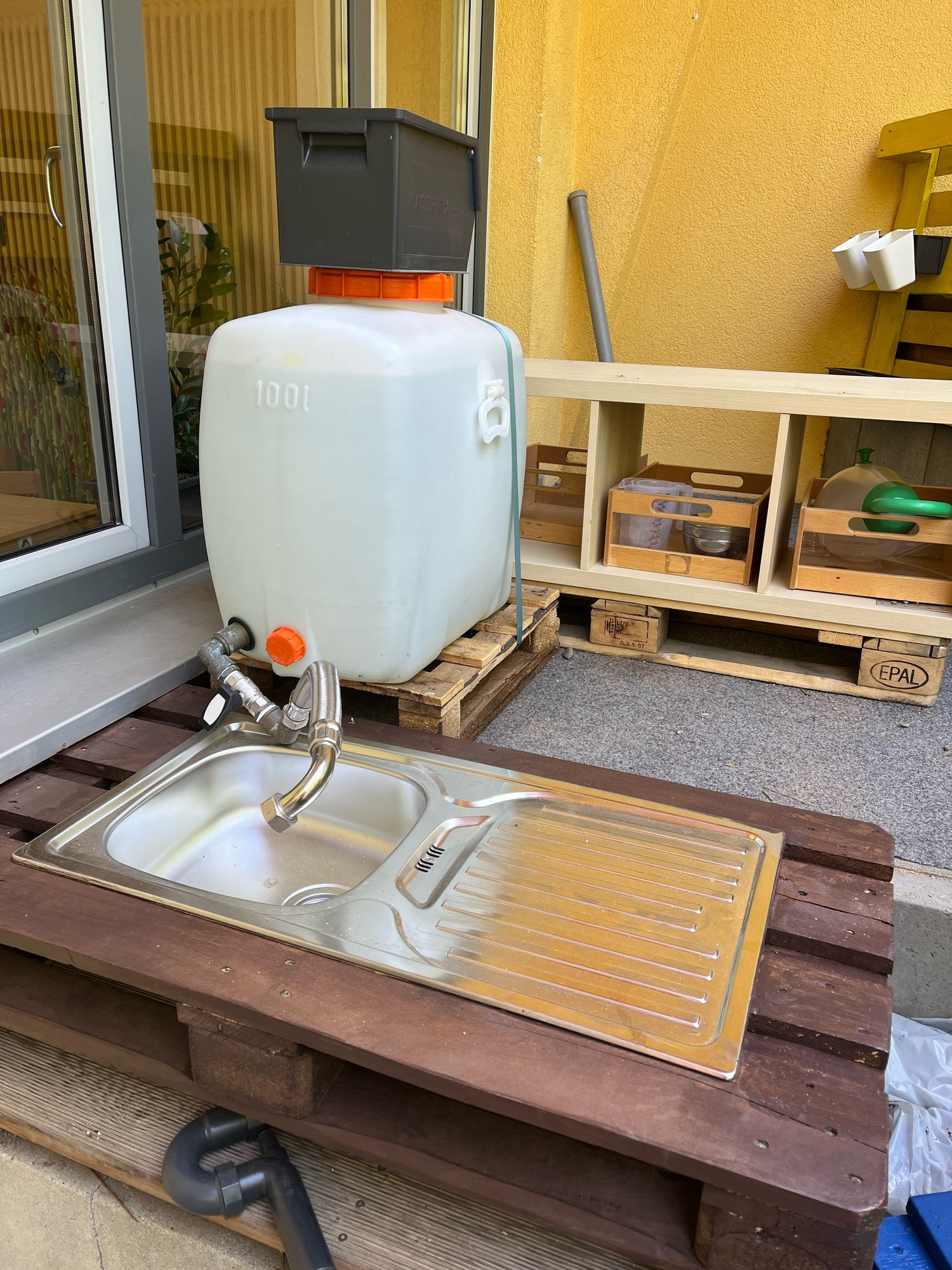 Der erste Eltern Aktionstag dieses Jahr fand statt. Die fleißigen Eltern trafen sich gemeinsam vorab in einem Planungsteam und konstruierten eine super Matschküche aus Euro Paletten.