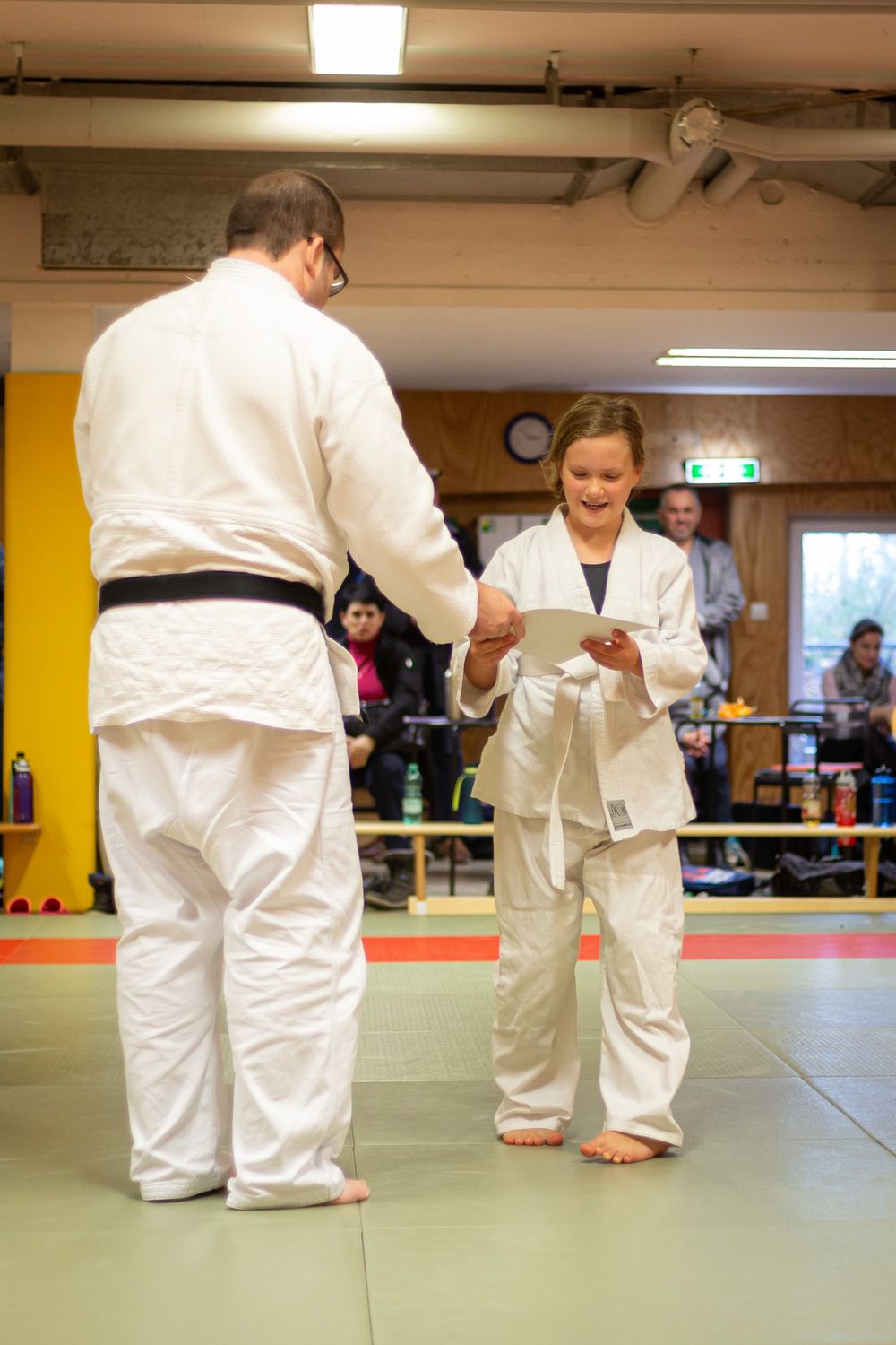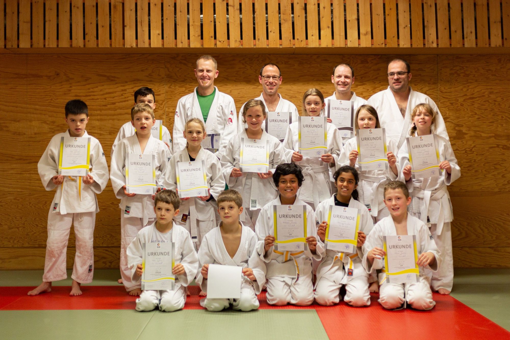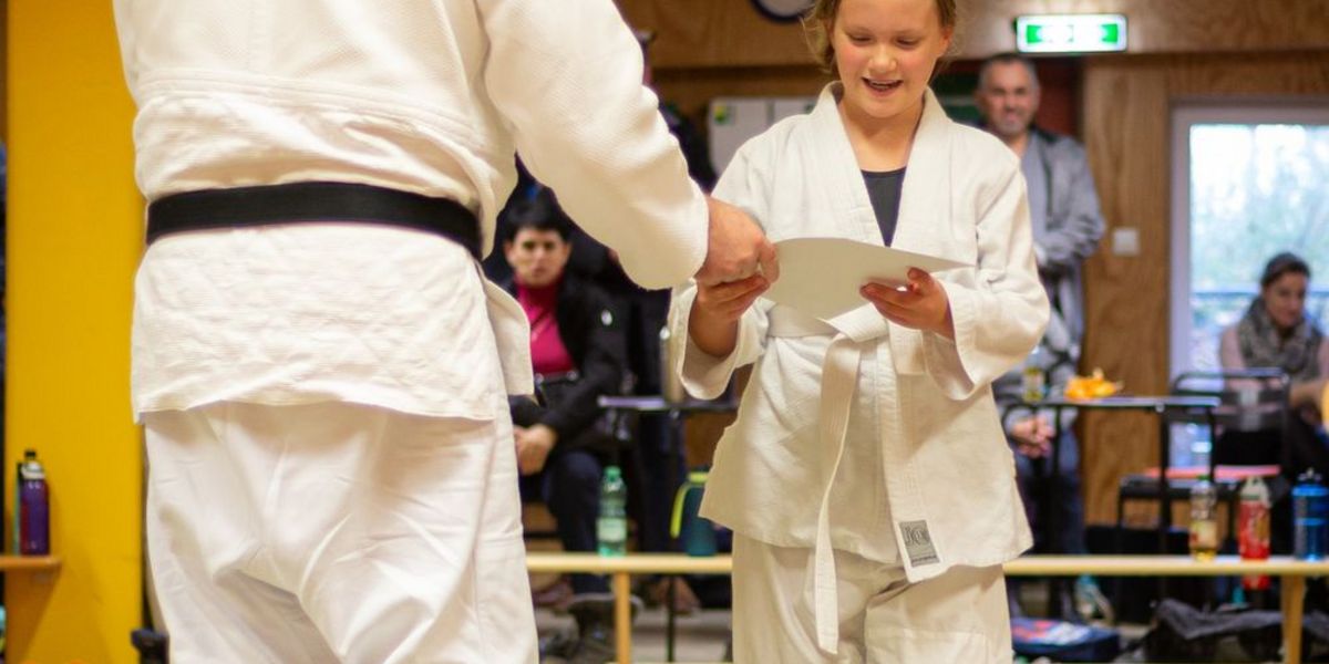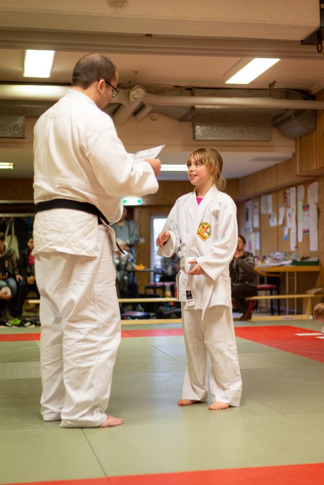 Prüfer Alex Hagel verschenkte nichts, zeigte sich aber am Ende mit den gezeigten Leistungen sehr zufrieden und überreichte allen Teilnehmern die jeweiligen Urkunden zum weiß-gelben, gelben, blauen und braunen Gürtel.