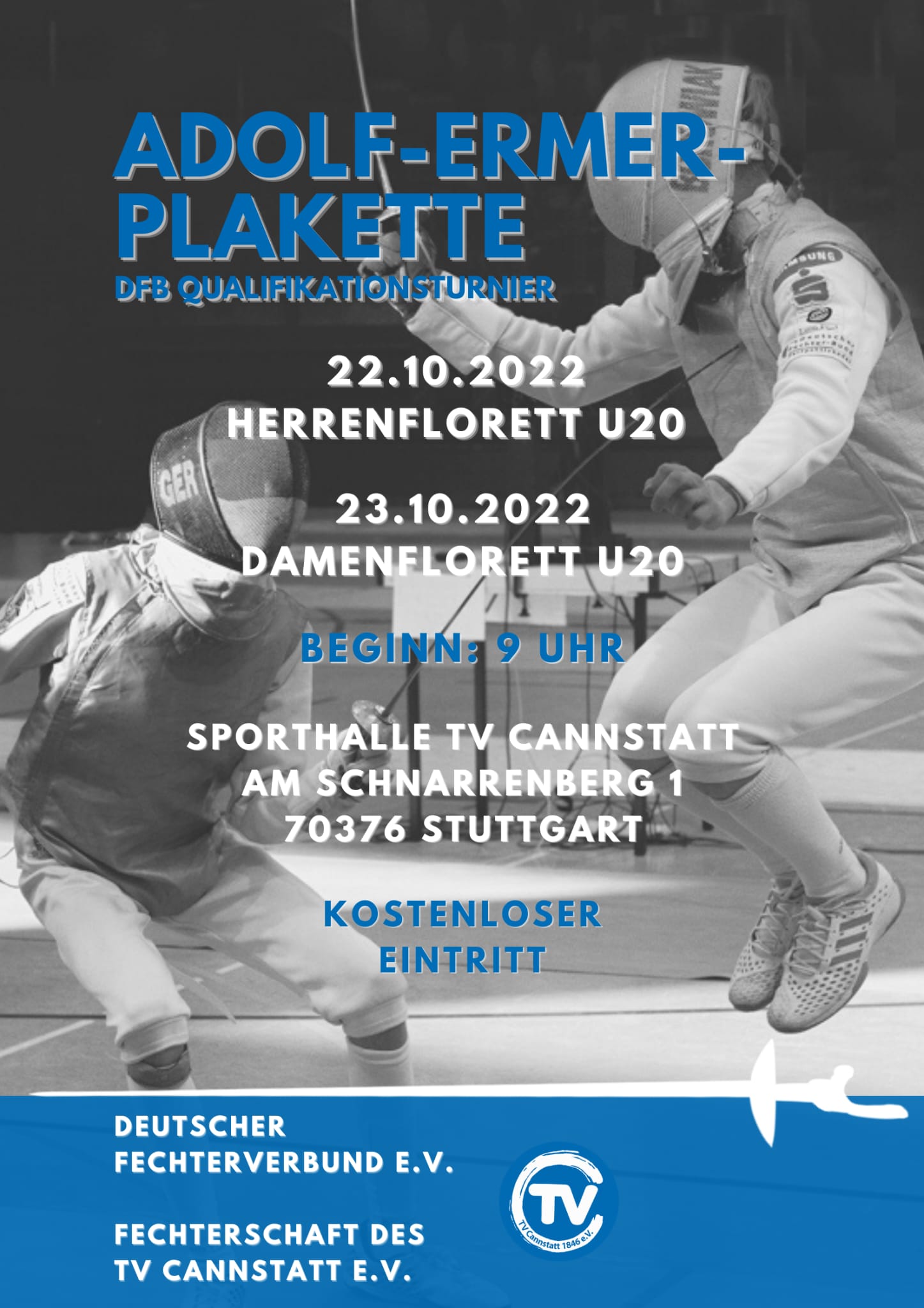 Nach einer langen Corona Pause freut sich die Fechtabteilung des TV Cannstatt wieder das internationale Qualifikationsturnier um die 55. Adolf Ermer Plakette, als größtes Florett-Turnier in Stuttgart auszurichten.