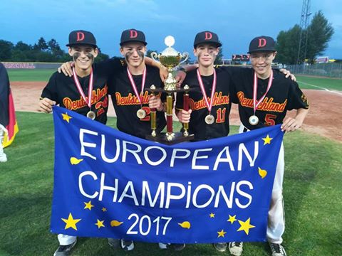 Bei der U15 Europameisterschaft wurden vier unserer Stuttgart Reds Jungs Europameister. Herzlichen Glückwunsch an Yannic, Yannick, Bene und Moritz zu diesem herausragenden Erfolg. Solche Erfolge bestätigen die hervorragende Jugendarbeit in unserer Baseball- und Softball-Abteilung.