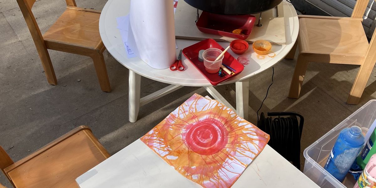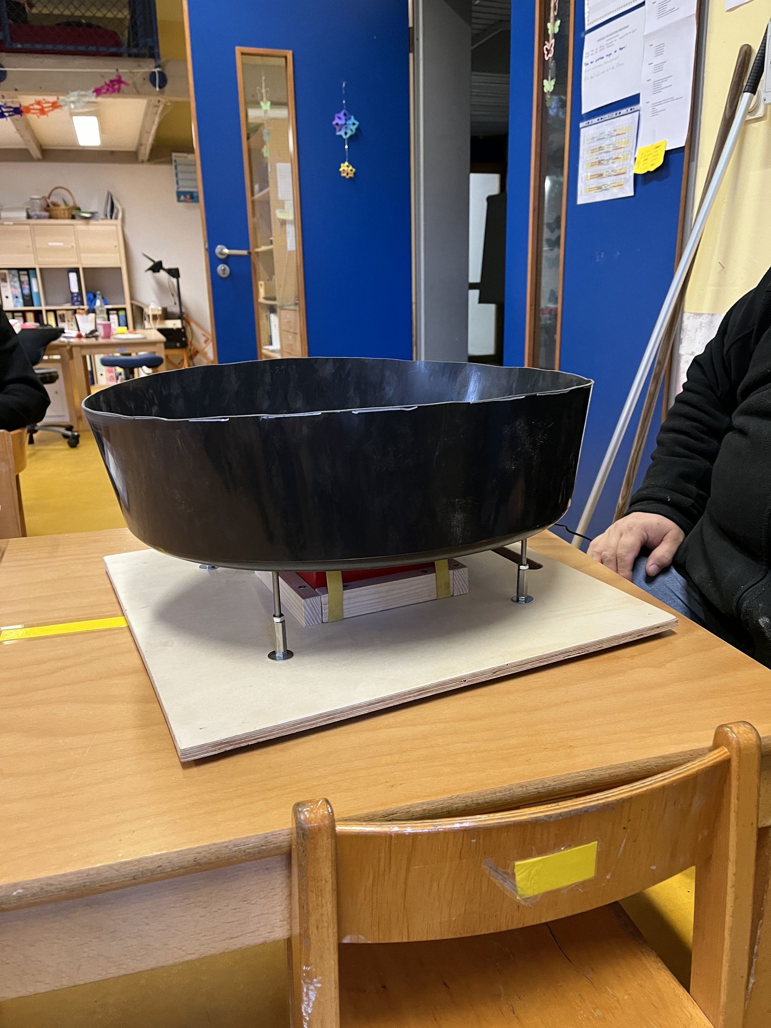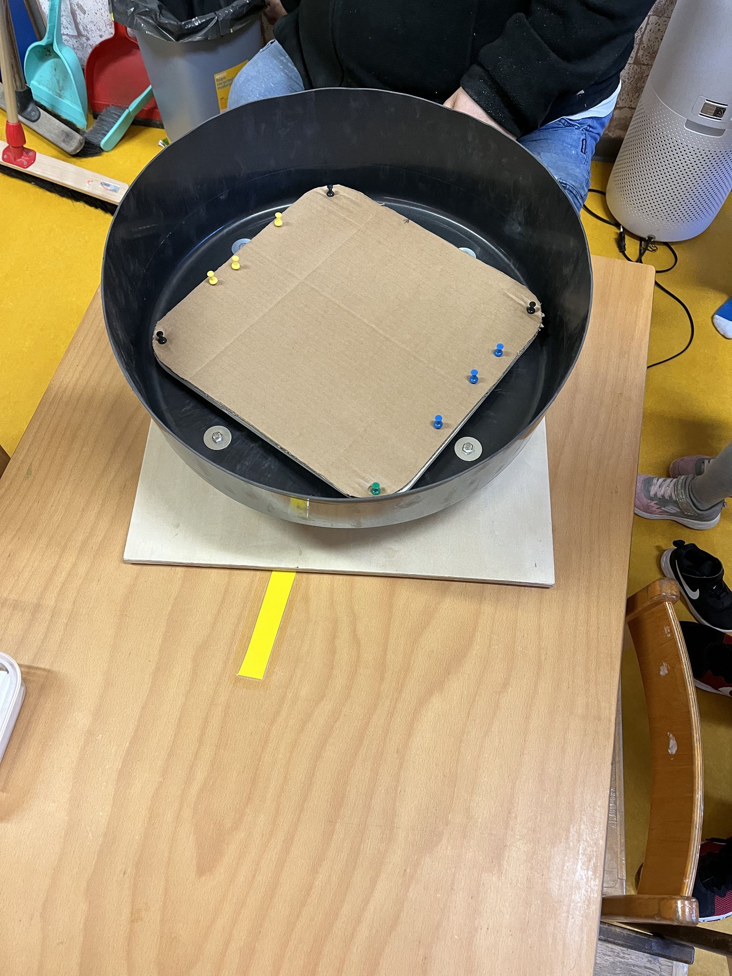 Der Wunsch nach einer XXL Farbschleuder kam auf. Unser Hausmeister nahm sich diesem Projekt an, plante und tüftelte an einem Antrieb. Nach kürzester Zeit kam er mit der erbauten Farbschleuder in die Kita. Hier staunten nicht nur die Kinder sondern auch die Erzieher über den stufenlosen Antrieb durch eine Töpfer Drehscheibe. Nun können hier neue, wunderschöne Kunstwerke der Kinder entstehen. Vielen Dank an unseren Hausmeister der uns mit solchen Sonderanfertigungen bereichert.