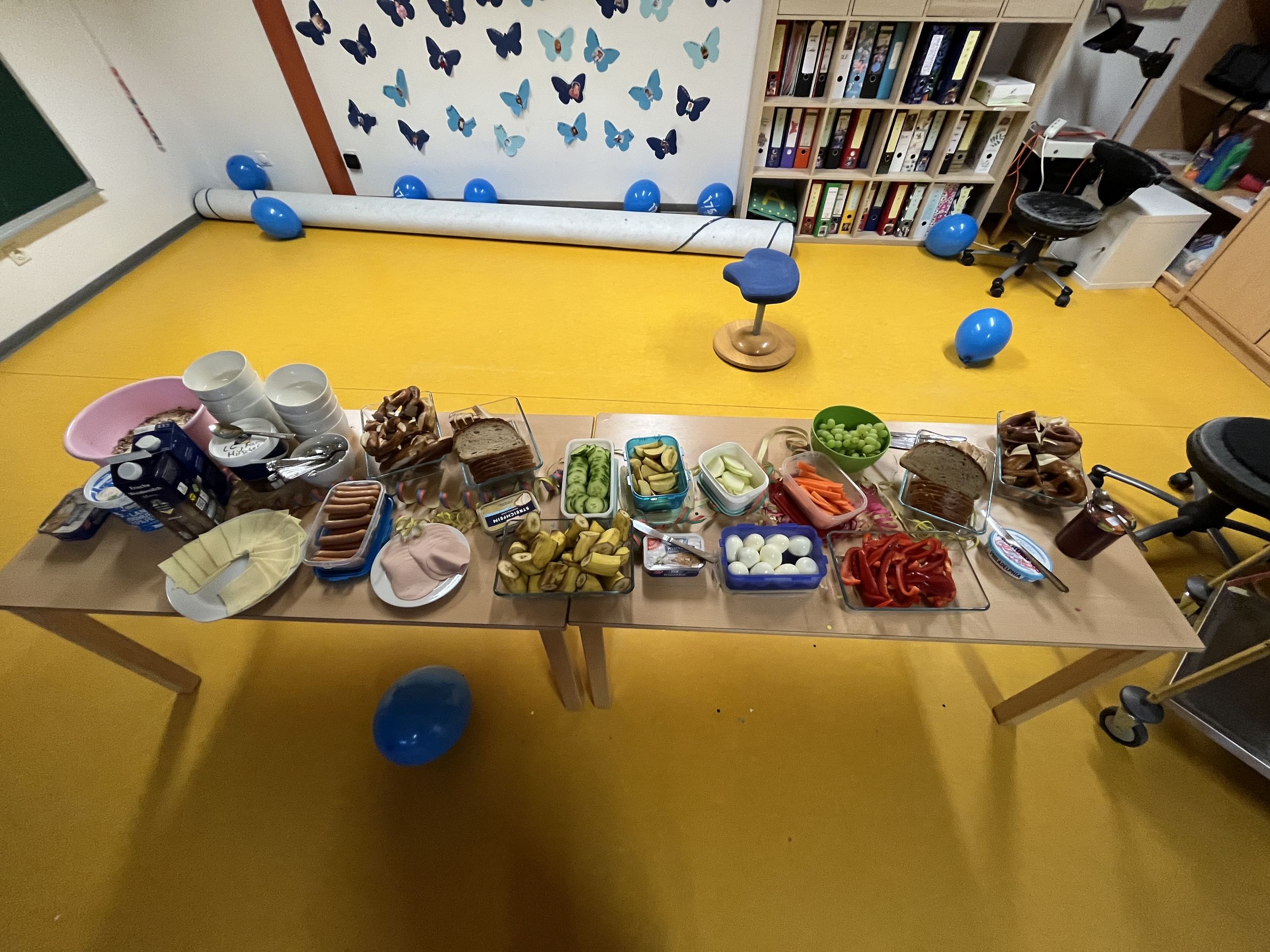 Getreu unseres Halbjahres Themas „Unser Sonnensystem“ war unsere Kita mit Astronauten, Raketen und Planetenluftballons dekoriert. Ebenfalls durfte die selbst gebastelte Clowns Deko sowie Luftschlangen nicht fehlen. Mit einem ausgiebigen gesunden Frühstück starteten wir in unseren Tag. Von der üblichen Kinderdisco bis hin zum Kinderschminken war alles geboten. Kinderpartyspiele wie der Zeitungstanz, Topfschlagen, Schaumkuss – Wettessen und das Schokoladen Würfelspiel haben nicht lange auf sich warten lassen. Zum Mittagessen gab es leckere Pizza und danach verbrachten wir den restlichen Tag mit Sonnenschein draußen im Garten.