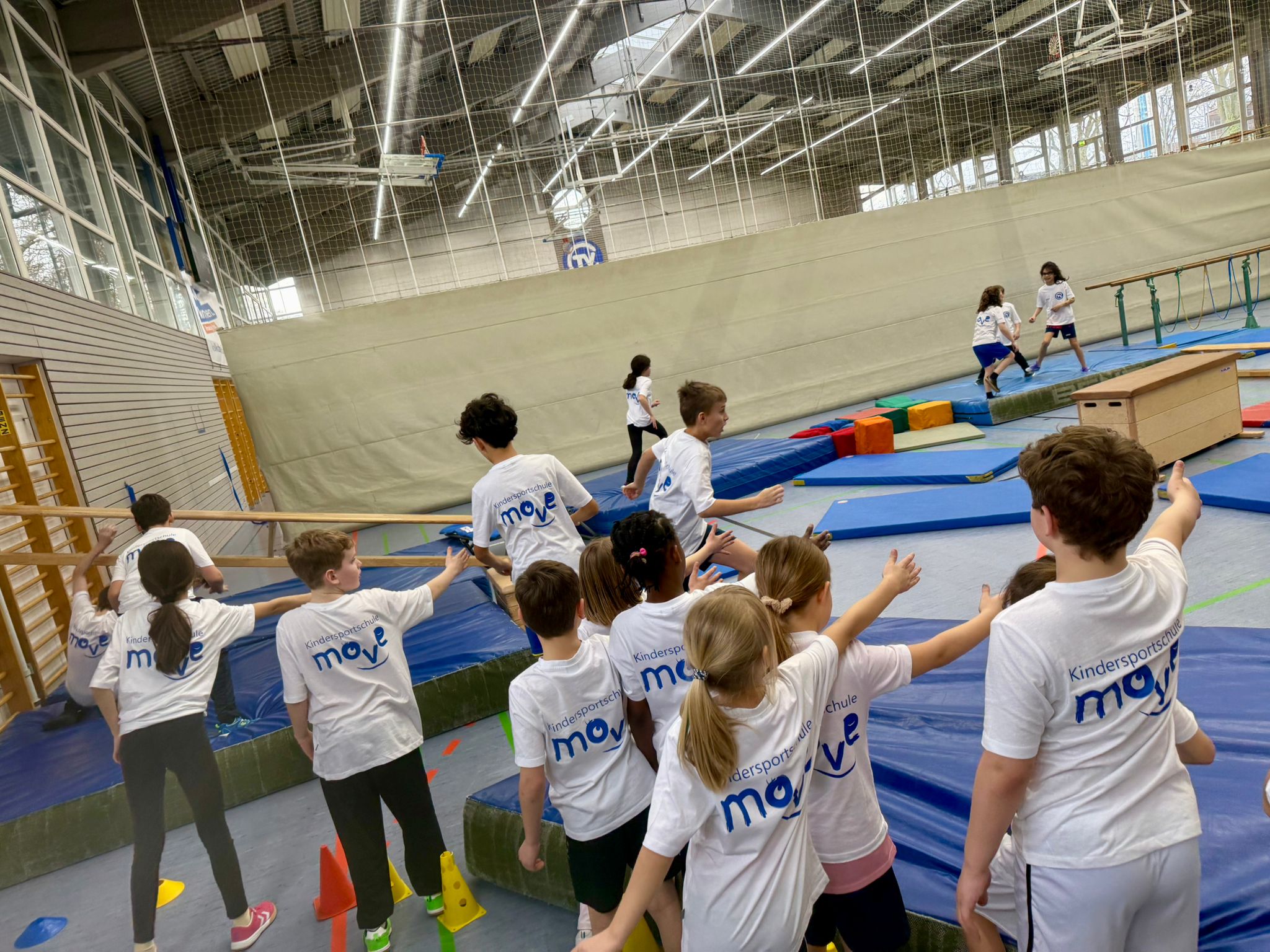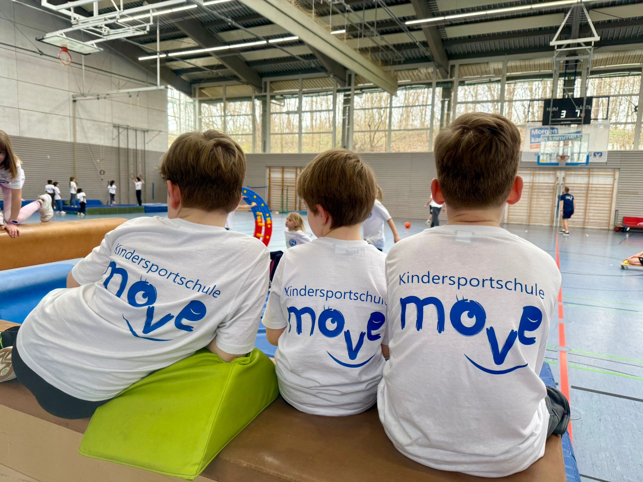 Am Montagmorgen wurden die Kinder herzlich empfangen und durften sich direkt über ein besonderes Geschenk freuen: Jedes Kind erhielt ein Kindersportschule move T-Shirt mit seinem eigenen Namen. Anschließend trafen sich alle in der Dreifeldhalle, wo sich das Sportlehrerteam vorstellte und die wichtigsten Regeln erklärte.