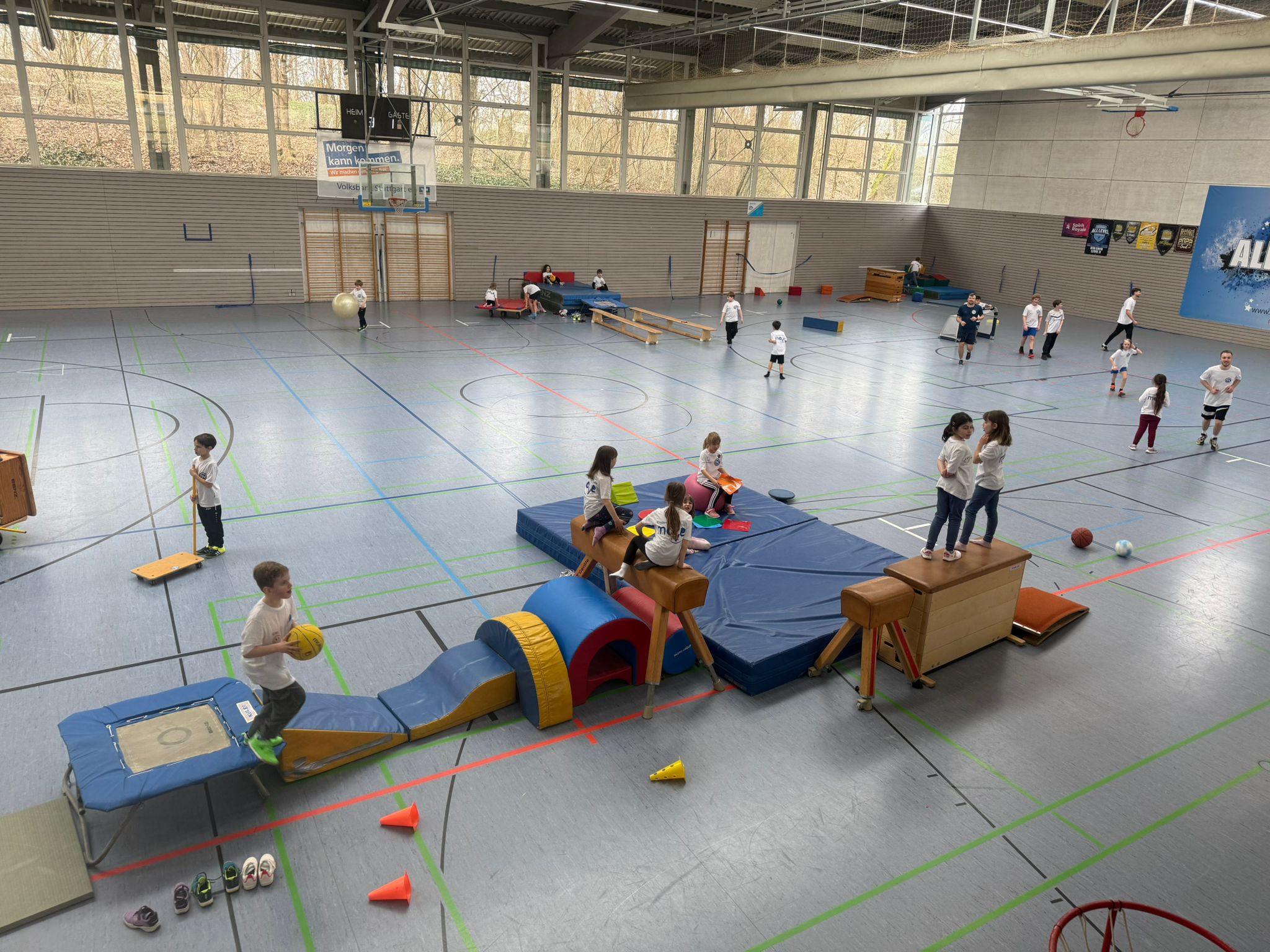 Am Mittwoch durften wir einen besonderen Gast begrüßen: Raphael aus dem Parkoursport. In altershomogenen Gruppen lernten die Kinder die Grundlagen dieser faszinierenden Sportart kennen. Parallel zeigte Sportlehrer Loris erste Basketballbasics.