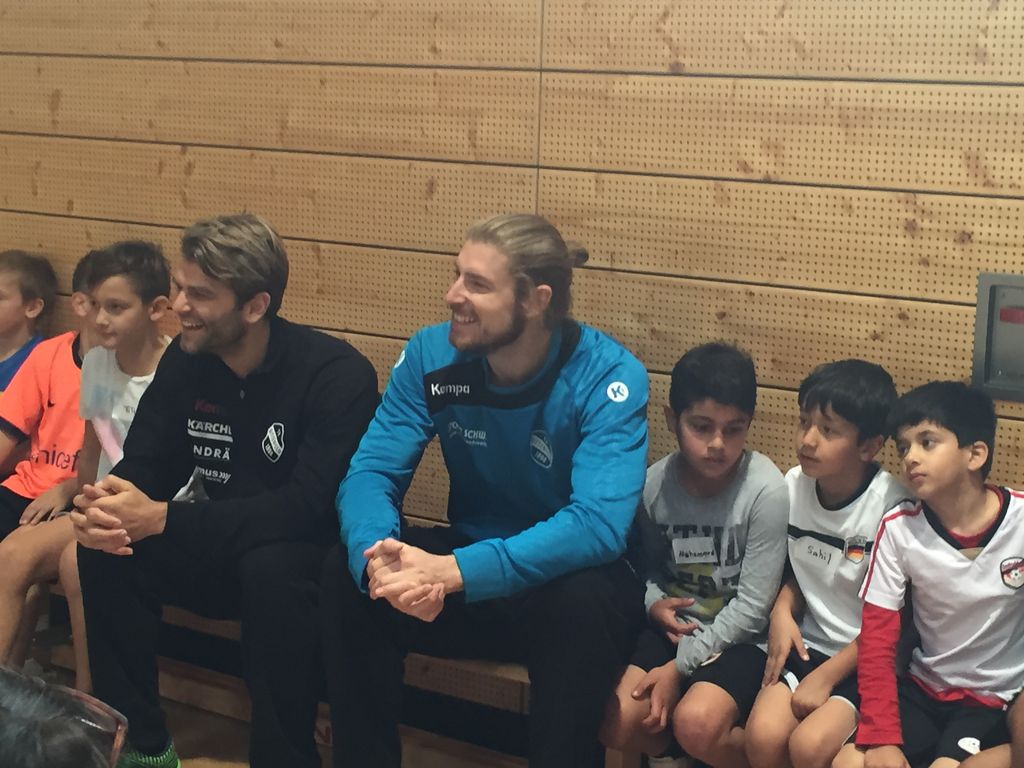 „Wir müssen und wollen den Handball verstärkt auch wieder in den Schulen in unserem Einzugsgebiet bekannter machen“, sagte Andrea Junker. Die CaMüMax-Jugendtrainerin ist überzeugt: „Gerade in unserem ganzheitlichen Ausbildungsansatz eignet sich Handball hervorragend für den Schulsport“. Überrascht zeigt sich TVB Stuttgart-Spielführer Michael Schweikardt, als ihn Katrin Steinhülb-Joos darauf hinweist, dass auch mehrere Inklusions-Kinder der Gemeinschaftsschule bei den Übungen dabei sind. „Dass es nicht auffällt“, so Schweikardt, „zeigt aber, wie wichtig gerade der Sport für die Herausforderung Inklusion ist“. Der TVB Stuttgart 1898 ist der HSG CaMüMax schon länger partnerschaftlich verbunden. „Der TVB hat auf unsere Anfrage, ob eine solche Aktion möglich ist, super reagiert“, freut sich Nikolai Forstbauer, der im HSG-Ausschuss die Farben des TV Cannstatt vertritt. „Die Vereine vor Ort“, betont Jürgen Schweikardt, Geschäftsführer des Bundesligisten TVB Stuttgart 1898, „sind die ersten Ansprechpartner für unseren Sport“.