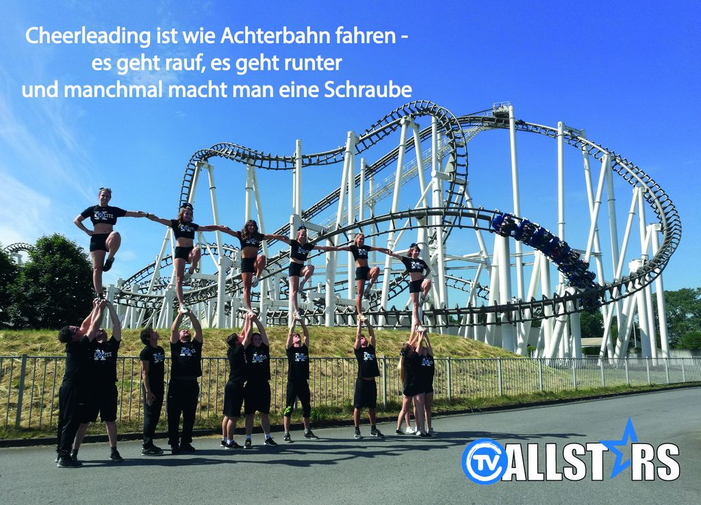 Zu Unrecht wird Cheerleading in der Öffentlichkeit immer noch als "Showauftritt" oder als "Anfeuerung der anderen Sportarten" gesehen. Wer sich trotz aller Klischees traut, die TVC ALLSTARS im Training zu besuchen, wird seine Meinung zum Cheerleading schnell ändern müssen.