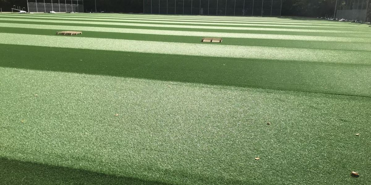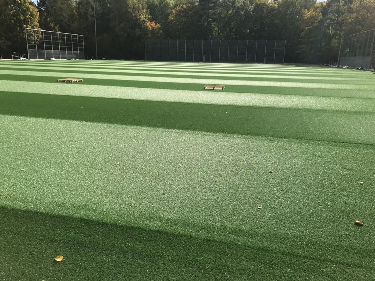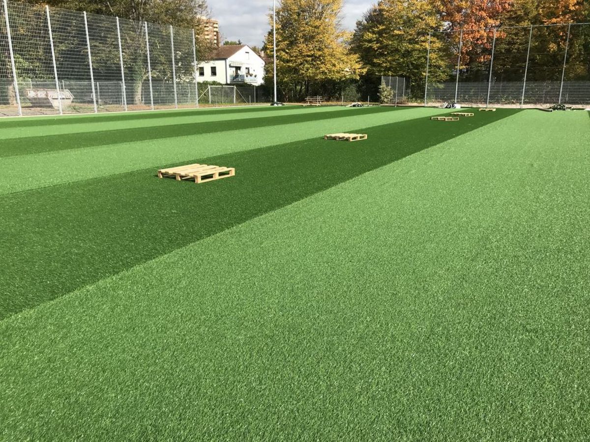 Der Kunstrasenplatz im Sportpark Freiberg-Mönchfeld nimmt Formen an und ist in den letzten Zügen. So langsam kommt auch Farbe ins Spiel.