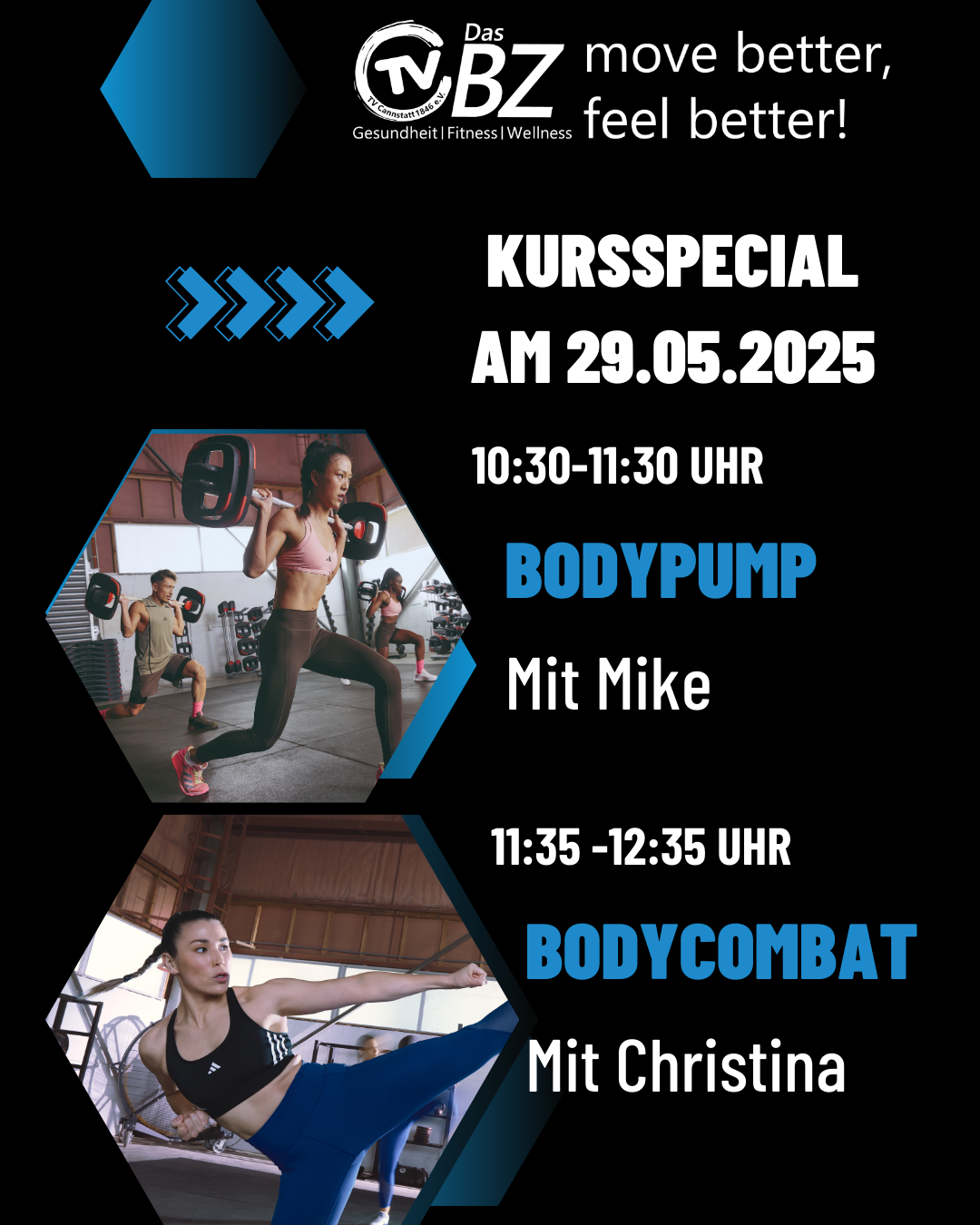 Am Donnerstag, den 29.05.2025 (Feiertag), erwartet dich im Bewegungszentrum ein sportliches Highlight: Unser Kursspecial bietet dir zwei energiegeladene Les Mills Einheiten am Vormittag: