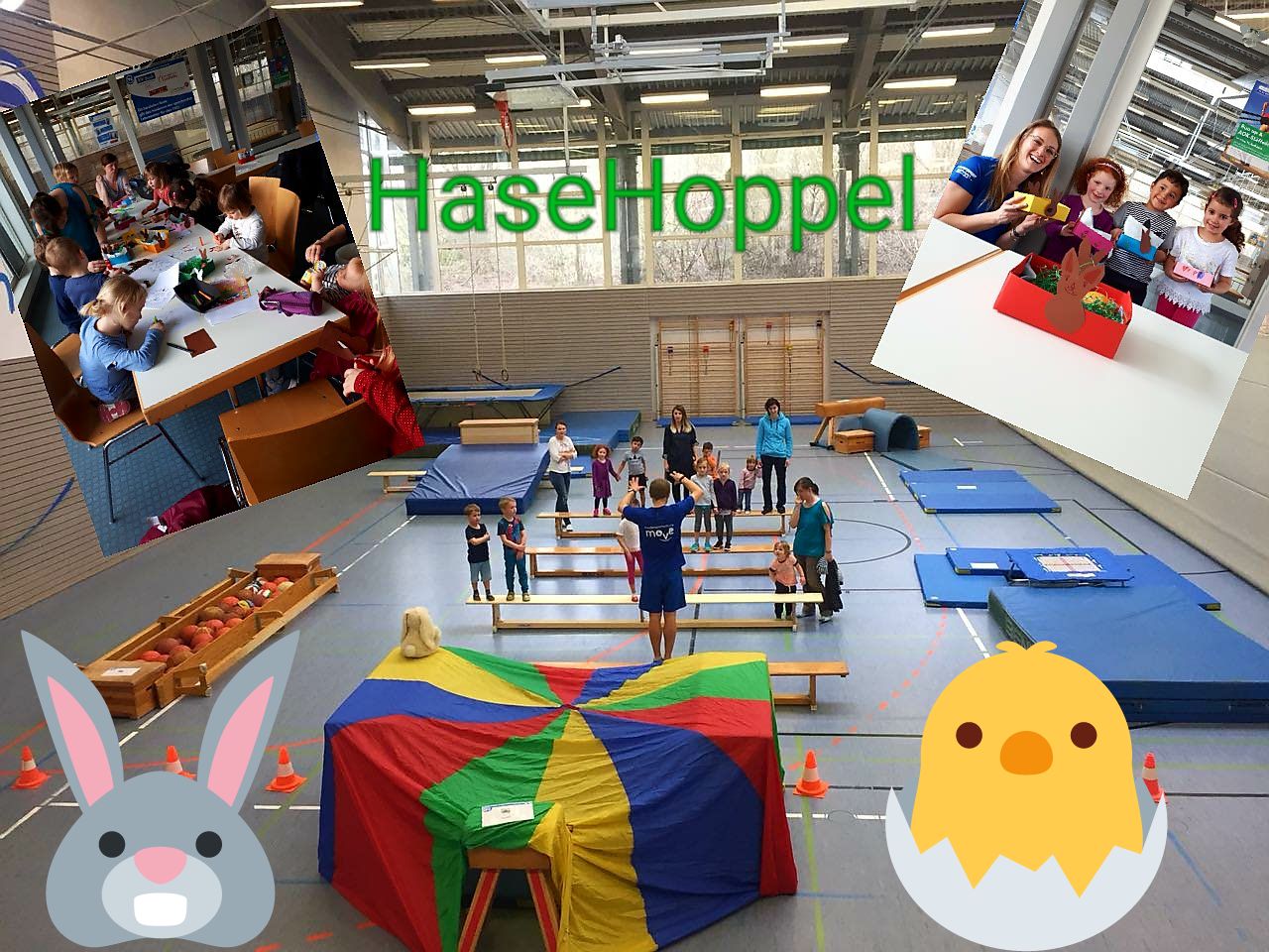 Ostern steht vor der Tür und Osterhase Hoppel steckt mitten in den Vorbereitungen um Eier für Groß und Klein zu färben und zu bemalen. Seine Körbe sind bereits prall gefüllt, jedoch sind es lange noch nicht genug um alle hungrigen Kinder satt zu bekommen. Deshalb hat Hase Hoppel uns darum gebeten, ihm bei der Arbeit zu helfen. Insgesamt kamen 15 fleißige Helfer mit ihren Eltern, um ihm ordentlich unter die Arme zu greifen. Bevor jedoch mit der Ostervorbereitung begonnen werden konnte, mussten alle unter Anleitung von Hase Hoppel die "Hasenschule" absolvieren. Zum warm up standen Haken schlagen, Hoppeln und Hüpfen auf dem Programm. Anschließend wurde der abwechslungsreiche Osterparcour von allen Kinder erkundet und bewältigt.