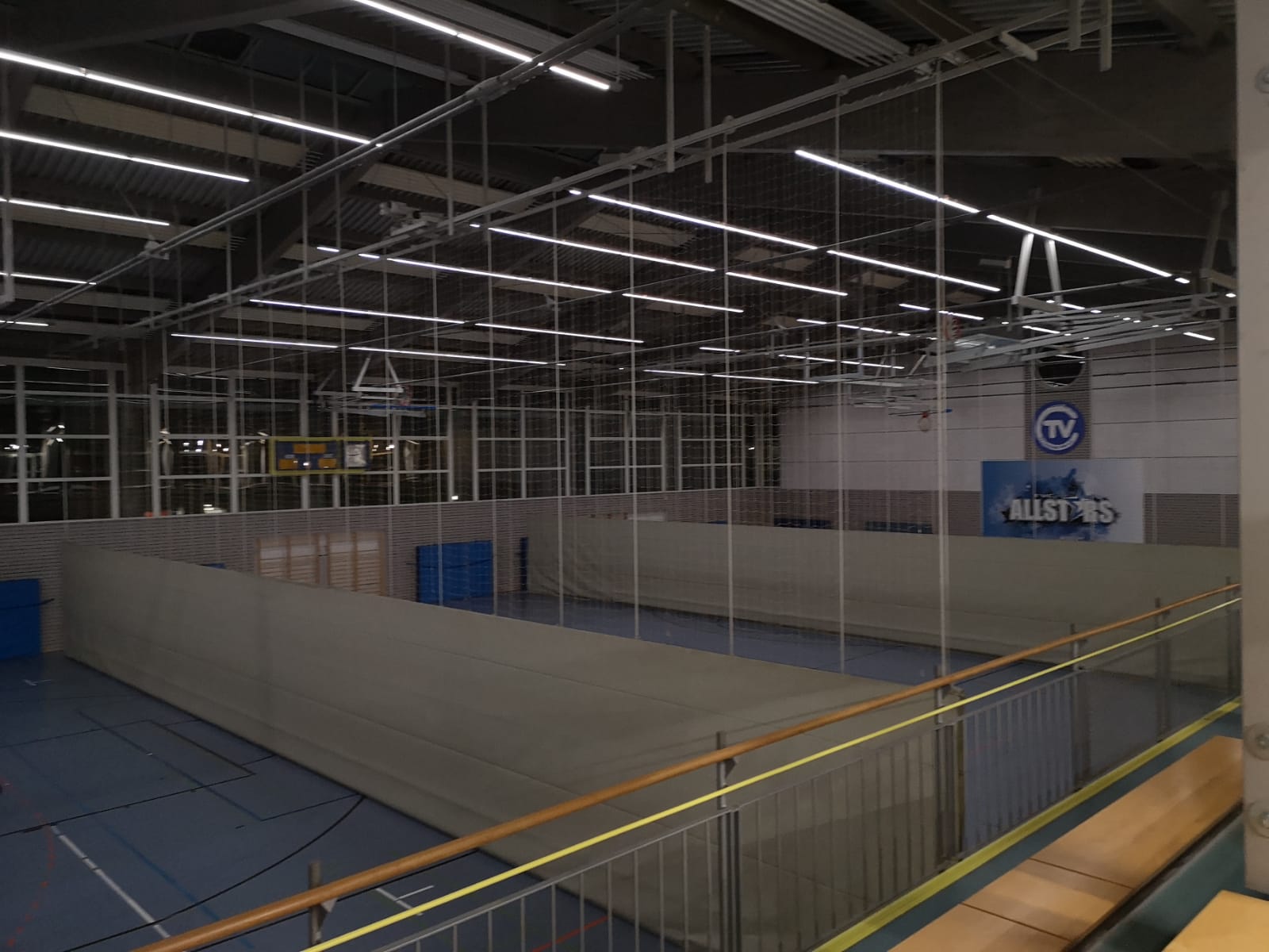 Insbesondere jetzt in der dunkleren Jahreszeit wird es gern übersehen, dass die Beleuchtung einen entscheidenden Kostenfaktor darstellt und die Ausleuchtung der Sportflächen positiv beeinflusst. Im Vergleich zu herkömmlichen Leuchtstoffröhren bieten LED-Lampen eine deutlich bessere Lichtqualität. Allein durch die Umstellung auf hocheffiziente LEDs kann der TVC schnell und dauerhaft Einsparungen von mindestens 65 % erreichen. Auf Grund dessen hat der TVC in diesem Sommer die große Dreifeld-Sporthalle, die Tennishalle, den Kursraum im Bewegungszentrum und weitere Beleuchtungsmittel im Trainingsbereich des Bewegungszentrums auf LED Beleuchtungsanlagen umgerüstet.