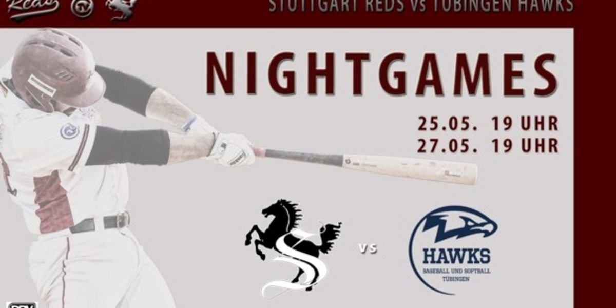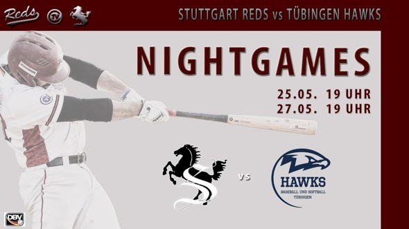 Am kommenden Mittwoch und Freitag finden die nächsten Heimspiele der Stuttgart Reds statt. Zu Gast bei den beiden Abendspielen sind die Hawks aus Tübingen. Abendspiele haben immer eine besondere Atmosphäre, deshalb würden wir uns über Ihr Kommen und Ihre Unterstützung sehr freuen! Die Spieltage gegen Tübingen sind "geteilt", deshalb finden die beiden Rückspiele in Tübingen am 26.05. und am 28.05. jeweils um 14 Uhr statt!