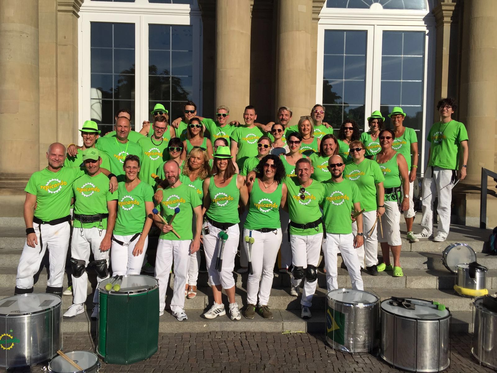 Hinter Repicando stecken rund 50 begeisterte Sambatrommler und Sambatrommlerinnen aus Stuttgart und Umgebung, mit viel Freude am Trommeln und an der dazu gehörenden tänzerischen Bewegung.