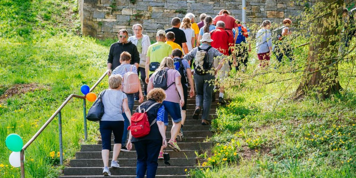 Auf der ausgeschilderten „StäffelesWalk“-Strecke starteten verschiedene Leistungsgruppen: Eine Running-Gruppe für alle ambitionierten Läuferinnen und Läufer und mehrere Walkinggruppen für zügige, durchschnittlich schnelle und gemütliche Walkerinnen und Walker. Alle Teilnehmer, denen die neun Kilometer der „StäffelesWalk“-Strecke zu lang waren, konnten stattdessen einen Spazierrundgang mit fünf Kilometern Länge in Angriff nehmen. Highlights der Strecke 2018 waren die malerischen Blicke auf das Neckartal und die Ruine Engelburg im Stadtbezirk Mühlhausen. Der „Run up“ bot eine Streckenführung ohne Stäffele und startete ebenfalls beim TVC. Geführt wurden alle Run up & AOK-StäffelesWalk-Gruppen von erfahrenen Walking- und Lauftreffleitern.