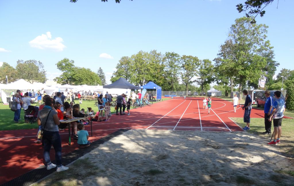 Besucher konnten am Fechtmobil Ihre Schnelligkeit testen und Fechtübungen machen, einem Schautennistraining zusehen sowie sich im Tennis Parcours und Kleinfeld Tennis zu versuchen. Die Leichtathletikabteilung bot einen Mehrkampf für Jedermann an, der einen 100 Meter Lauf, einen 800 Meter Lauf, Weitsprung und Weitwurf beinhaltete und für den die Teilnehmer am Ende eine Urkunde erhielten. Mutige Besucher konnten im Schlagtunnel, einen Baseball schlagen und Jung und Alt wurden von der Volleyballabteilung zum Rutschbagger, Hula-Hoop-Aufschlag, Sprungkrafttest, Seilhüpfen und Hütchenpritschen animiert. Großen Spaß hatten die Kleinen nicht nur beim Rutschbagger, der zur Wasserrutsche umfunktioniert wurde, sondern auch bei Angeboten der Sportkindertagesstätten wie Kinderschminken und einer Spielstraße. Über die Angebote des Pfefferclubs, der 2018 sein 20 jähriges Bestehen feiert, informierten einige engagierten Gruppenmitglieder. Der Pfefferclub des Turnverein Cannstatts verbindet sportliche Aktivitäten mit geselligen Treffen für Junggebliebene und freut sich über jedes neue Gesicht.