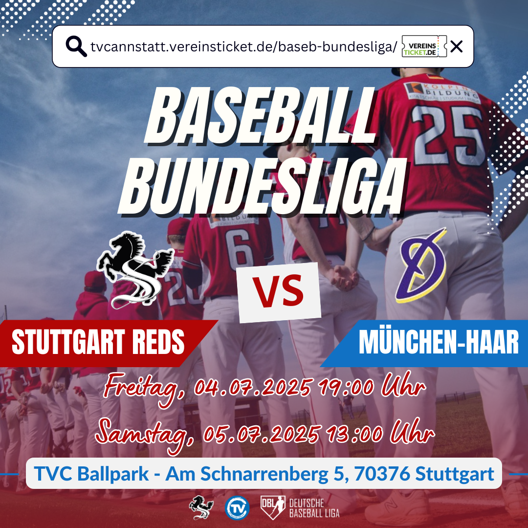 Kommen Sie zum TVC Ballpark und erleben Sie zwei Tage voller packender Baseball-Action gegen die München-Haar Disciples. Unterstützen Sie die Reds in einem der besten Ballparks der Liga. Tickets: Jetzt sichern