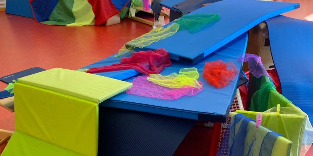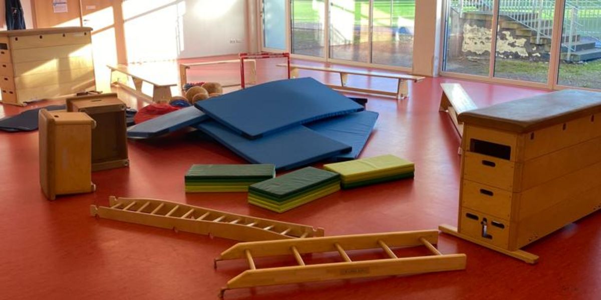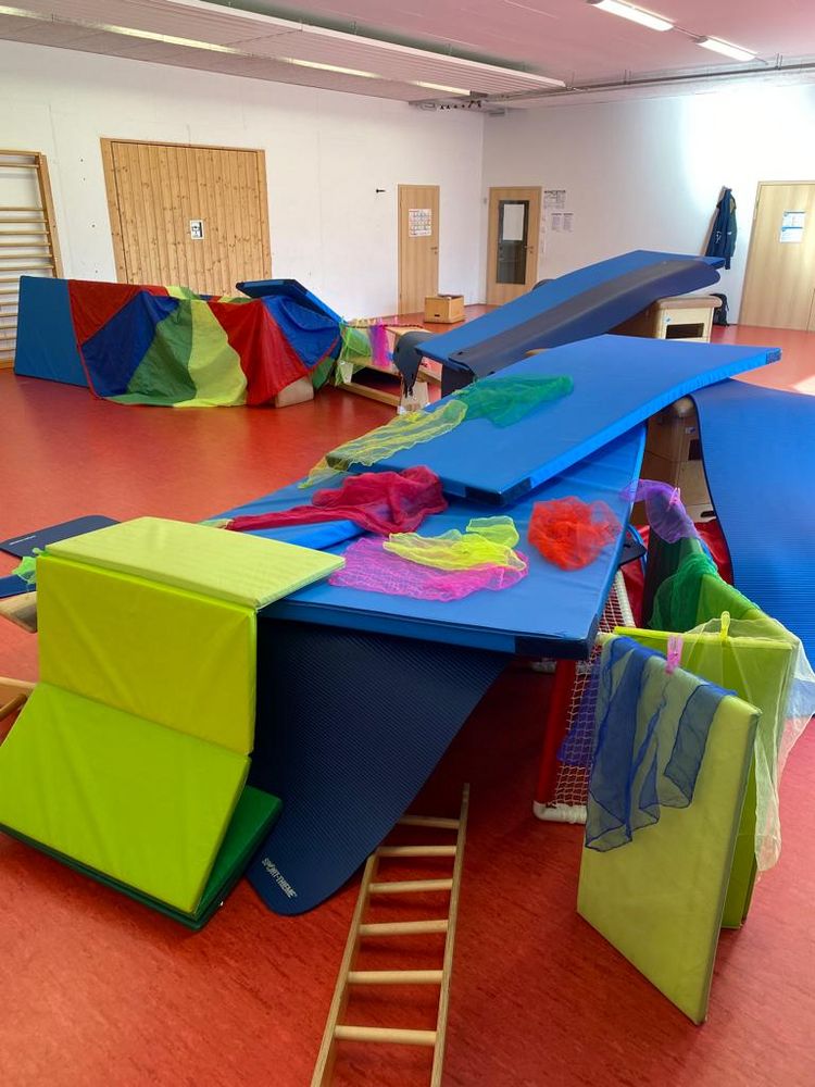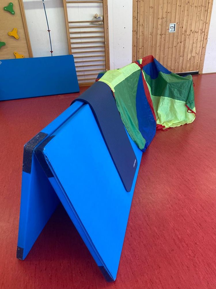 Baumstämme, Steine und Felsen lagen zum Höhlenbau bereit. Mit verschiedenen Materialien aus der Sporthalle konnten die Kinder die Schlafplätze der Tiere für den Winterschlaf bauen. Tolle Bauwerke entstanden in der Sportstunde.