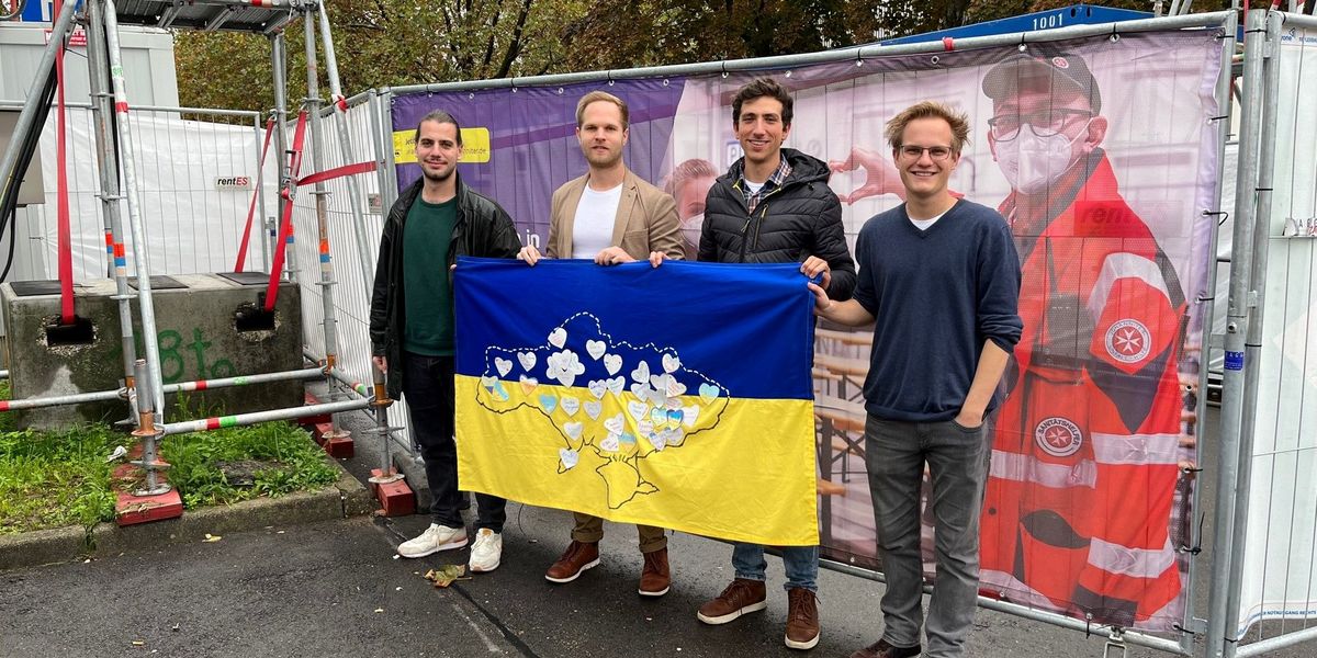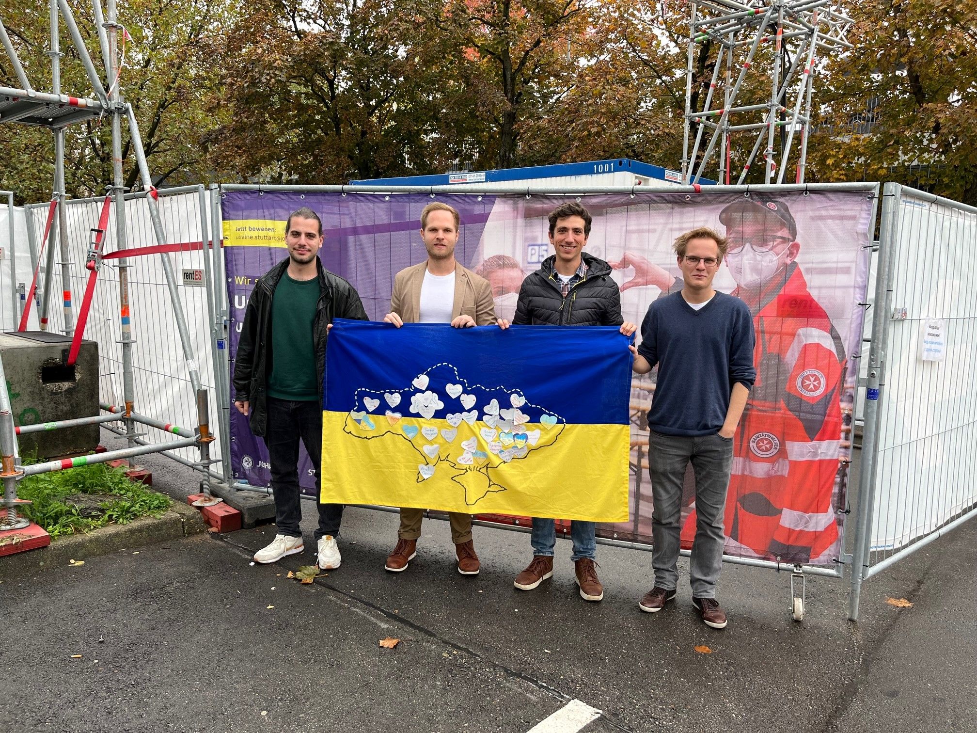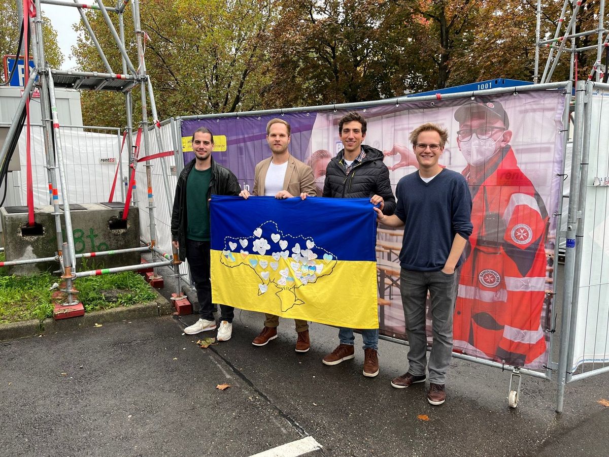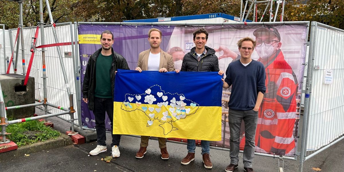 v. l. n. r. Lennart Eckle (Notunterkunft Schleyer-Halle), Benjamin Löwinger (TVC Geschäftsführer, Christian Jeuter (Amt für Sport und Bewegung), Maximilian Dietrich (Notunterkunft Schleyer-Halle)
