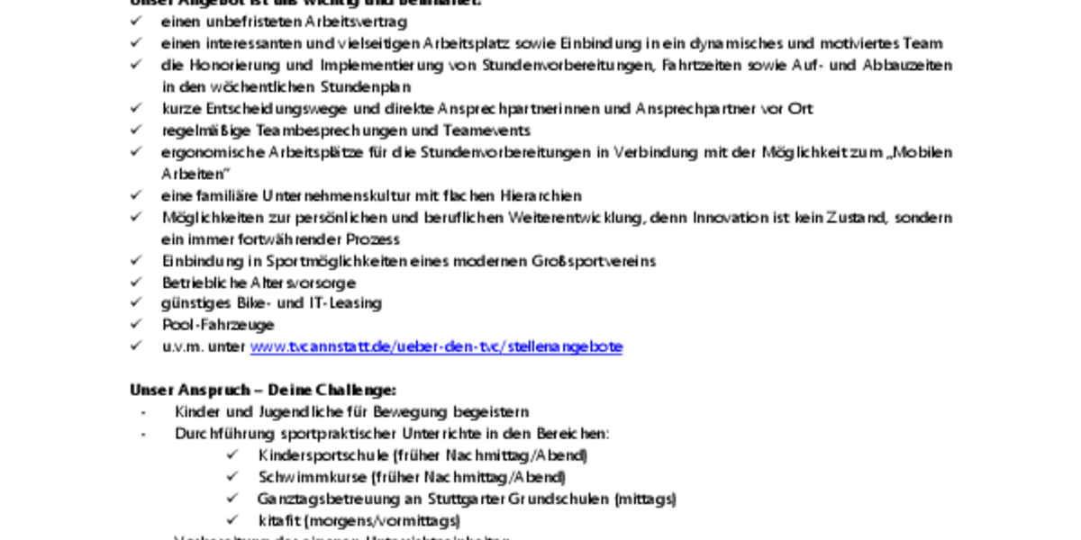 - u.v.m. unter www.tvcannstatt.de/ueber-den-tvc/stellenangebote