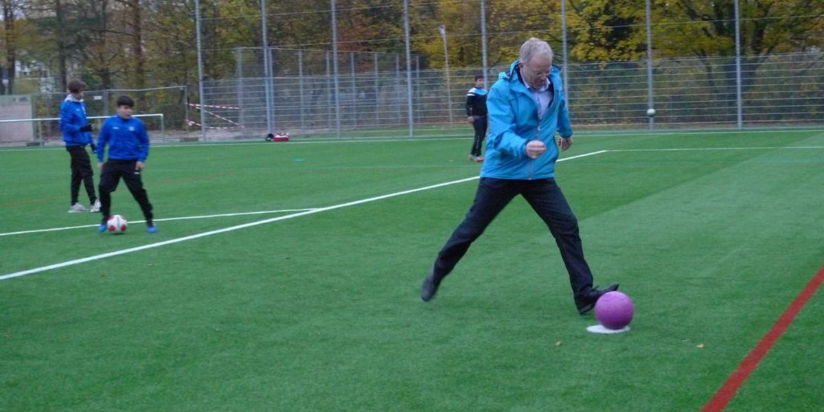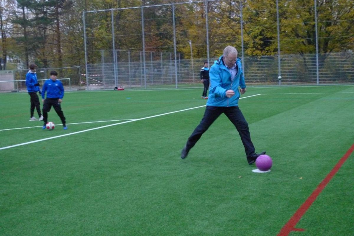 Besonders dankte der Präsident dem Gemeinderat für den Neuanfang und allen am Umbau Beteiligten. Im Anschluss gab es noch einen Elfmeter von Dr. Martin Schairer mit dem Torwart Roland Schmid.