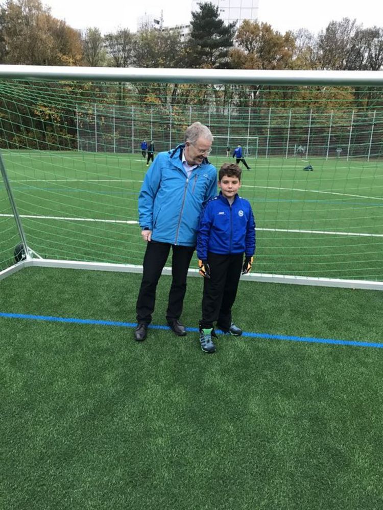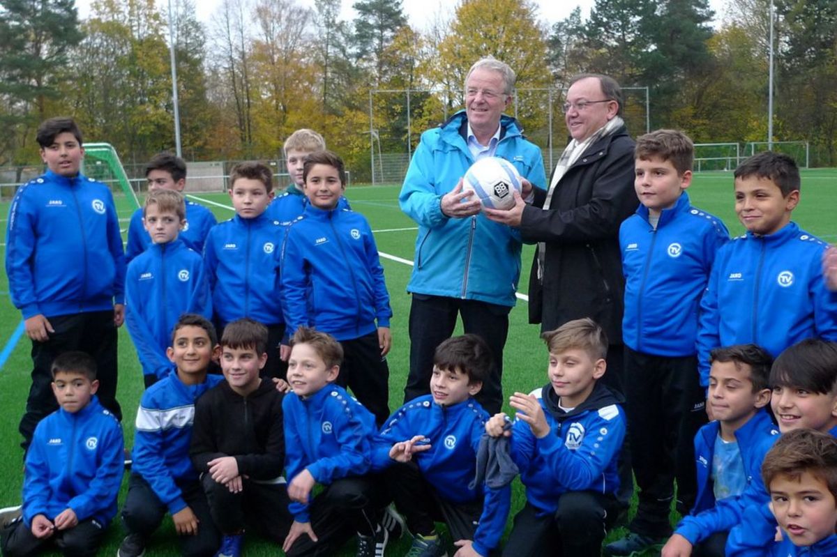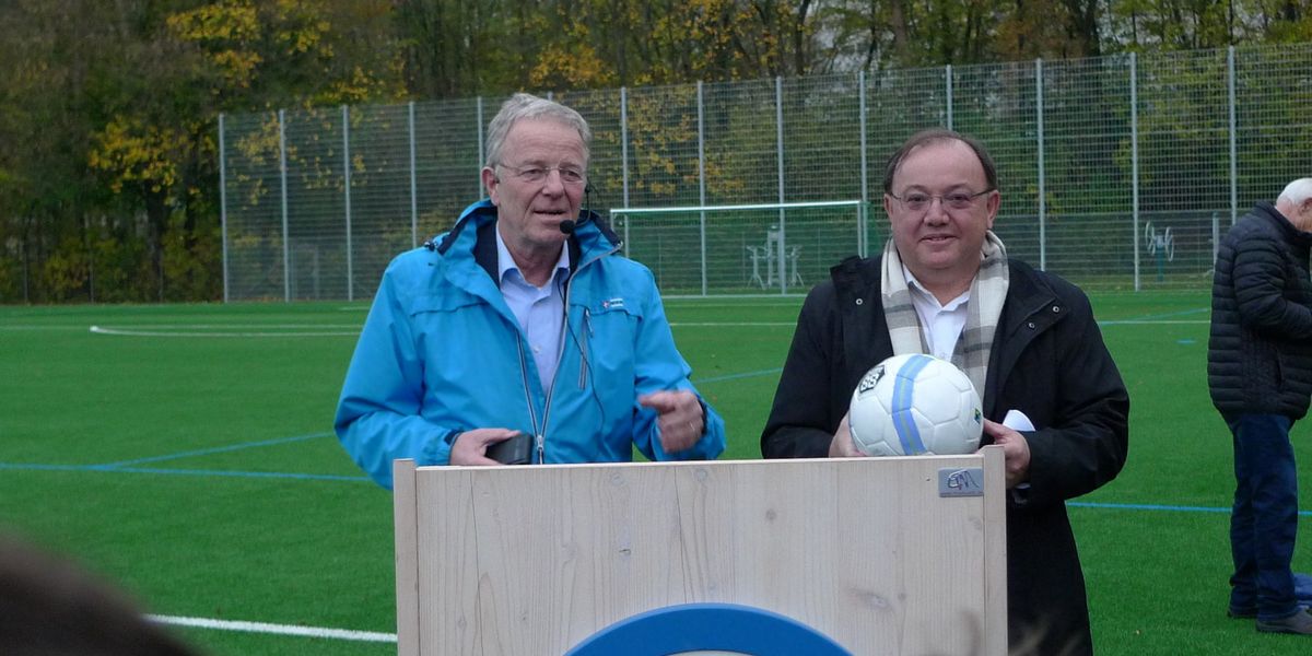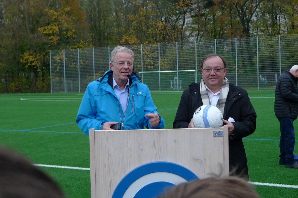Dominik Hermet vom Sportkreis Stuttgart und Heinz Meyer vom Württembergischen Fußballverband übermittelten ihre Glückwünsche und wünschten gutes Training auf dem neuen Kunstrasenplatz.