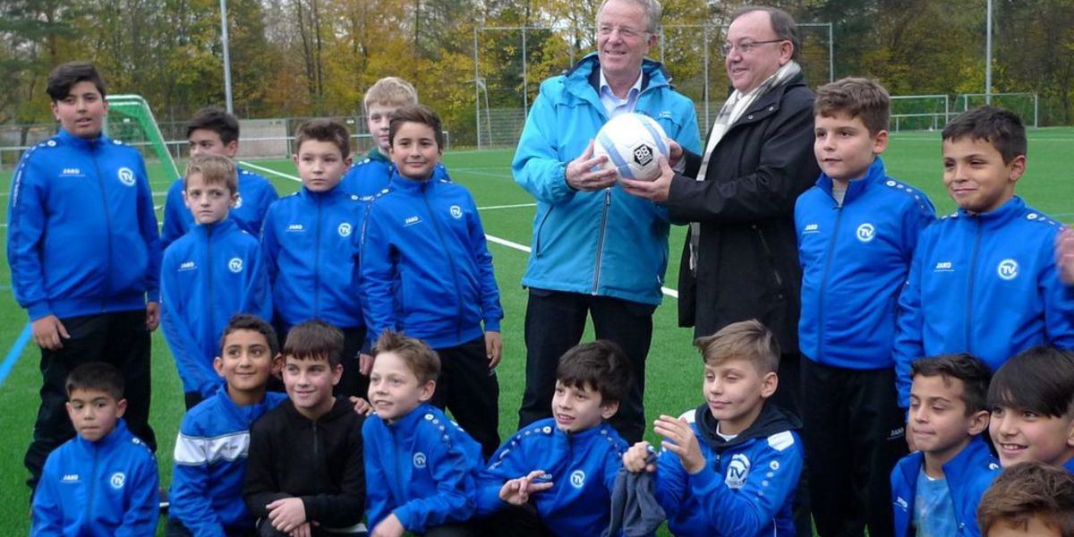 „Mit der Einweihung des Kunstrasenplatzes wird die Sportanlage des TV Cannstatt stark aufgewertet. Der Verein verfügt nun über einen Platz, der den hohen Anforderungen an den Trainings- und Spielbetrieb der Fußballmannschaften gewachsen ist", begrüßte Dr. Martin Schairer die Gäste und betonte den kurzen Umbau der Sportanlage. Die Umbauarbeiten auf der Fläche des 1969 errichteten Tennenplatzes begannen im Juni und konnten pünktlich zur Einweihung fertiggestellt werden. Mit einer Größe von 90 mal 60 Metern hat der Kunstrasenplatz nun optimale Trainingsbedingungen für die TVC-Fußballabteilung.