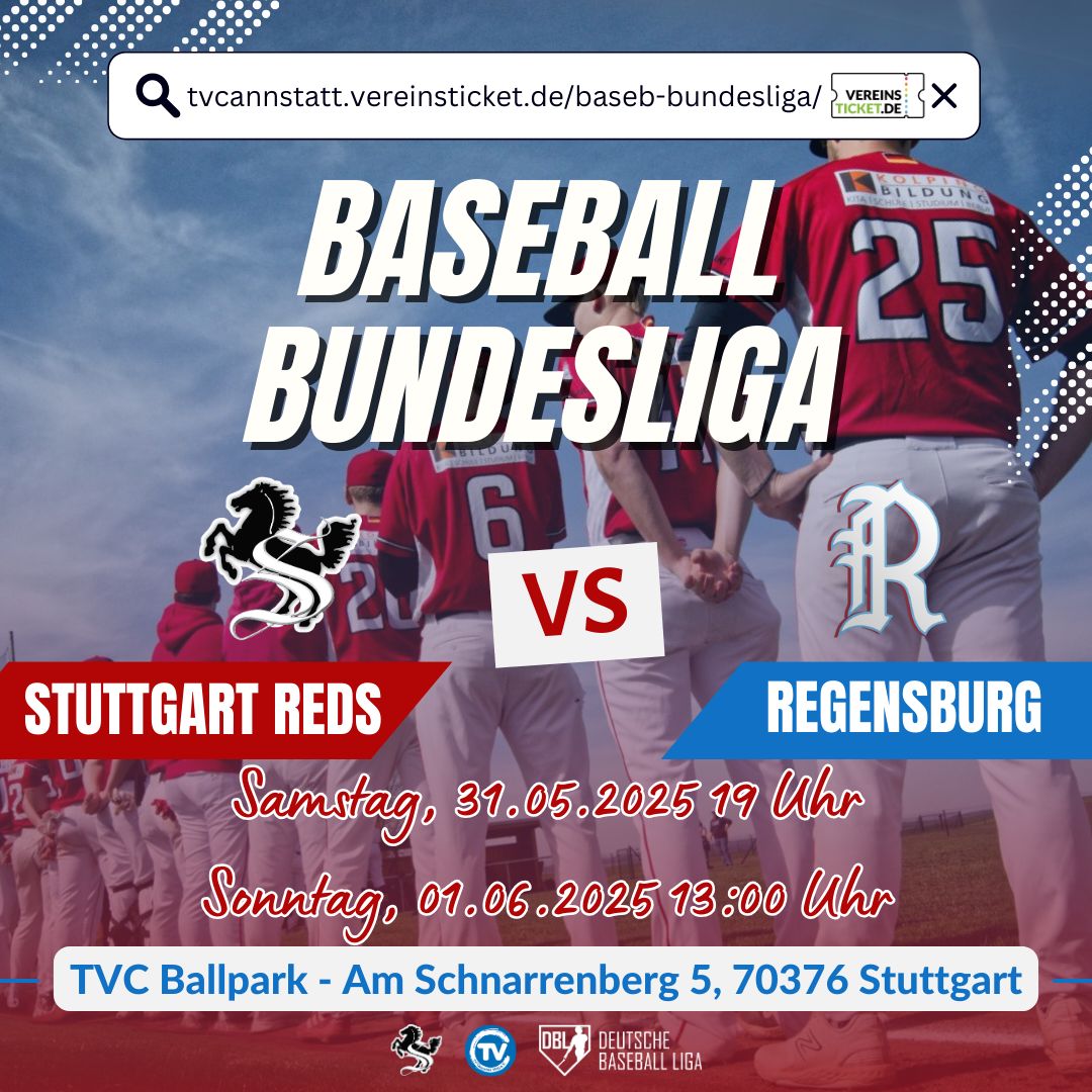 Seien Sie dabei, wenn die Stuttgart Reds gegen die Guggenberger Legionäre antreten. Ein spannendes Baseball-Wochenende erwartet Sie im TVC Ballpark. Tickets: Jetzt sichern
