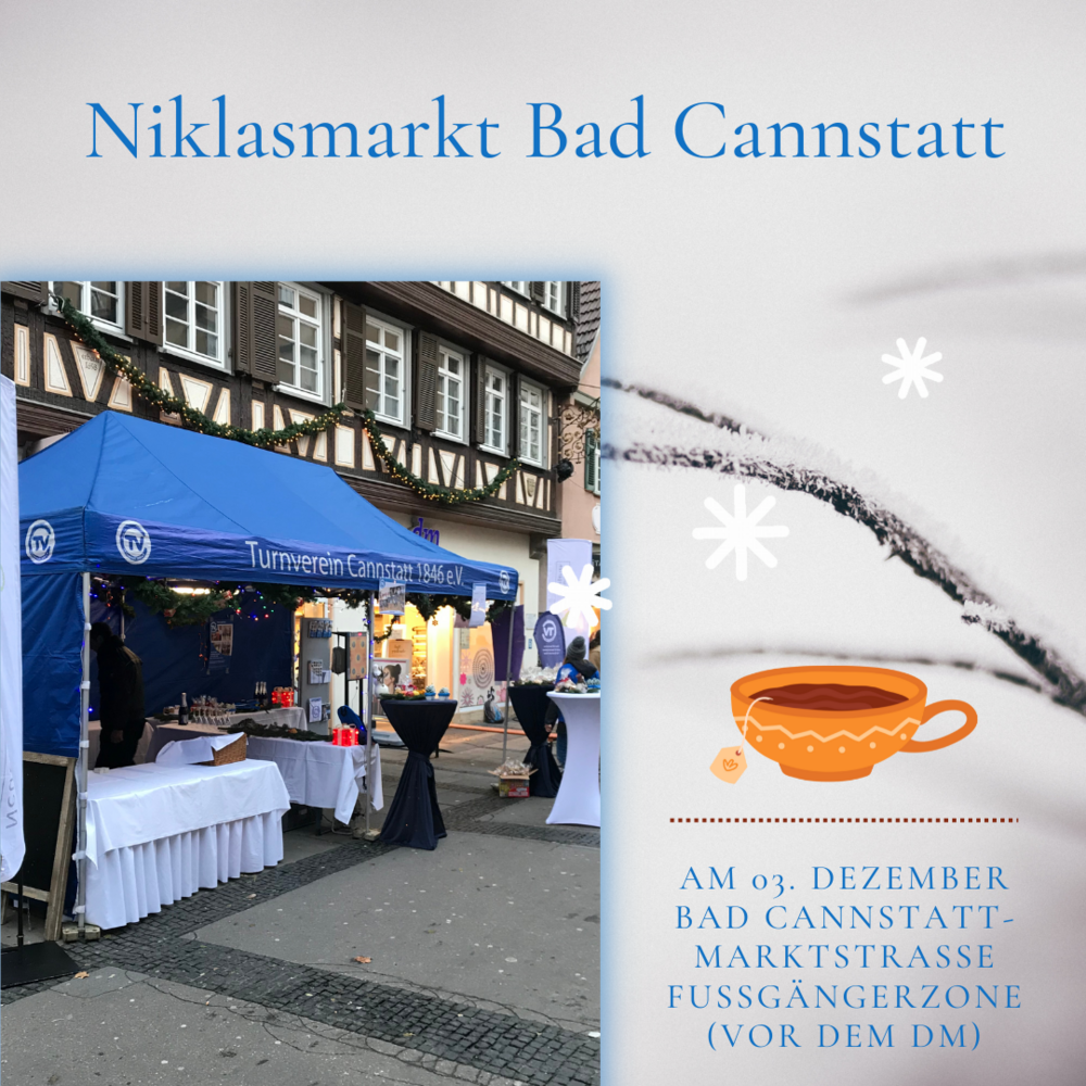 Hiermit möchten wir Sie herzlich einladen, am 03.12.2022 nach Bad Cannstatt auf den Niklasmarkt zu kommen. Der TVC hat seinen Stand wieder vor dem DM in der Cannstatter Fußgängerzone (Marktstraße).