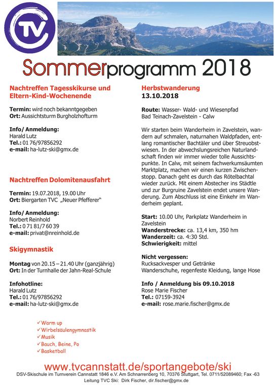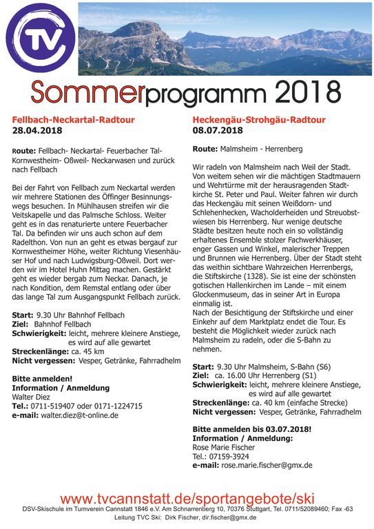die mit der Abteilung TVC Ski auf Rad- oder Wandertour gehen möchten!