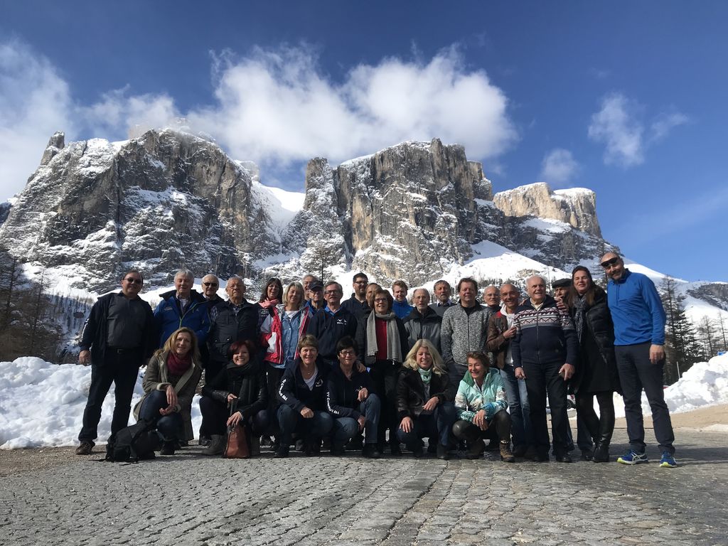 Bei herrlichem Sonnenwetter konnten die Skifreunde des TVC die Woche in den Südtiroler Dolomiten beginnen. Hervorragend präparierte und nahezu leere Pisten boten ein unbeschreibliches Vergnügen und man konnte die Pisten in ganzer Breite ausnutzen. Carven, Kurzschwung und viele andere Übungen waren so problemlos möglich. Großes Vergnügen bereitete z. B. das Formationsfahren in unterschiedlichen Variationen. Während des Transportes hoch hinaus mittels Gondeln und Sesselliften konnte man die wunderschöne Bergwelt genießen. Der Schnee, der teilweise schon auf den Almen geschmolzen war, sah wie mit dem Pinsel in die Landschaft getupfte weiße Flecken aus. Das riesige Gebiet rund um den Sellastock konnten die Mitglieder der Skiabteilung in Gruppen jeweils mit einem Skilehrer erkunden und sich getrost führen lassen. Hierbei wurden die Techniken verbessert und wertvolle Tipps von Seiten der Skilehrer gegeben. Am dritten Tag überraschte eine Neuschneedecke, die die ganze Bergwelt überzogen hatte. Auch tagsüber schneite es noch weiter, sodass das Fahren bei diesen Bedingungen ganz neue Erfahrungen und Kenntnisse brachte. Am Spätnachmittag trafen sich die verschiedenen Gruppen im gemütlichen Entrée des Hotels, um sich über die Tageserlebnisse auszutauschen.