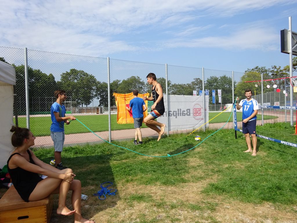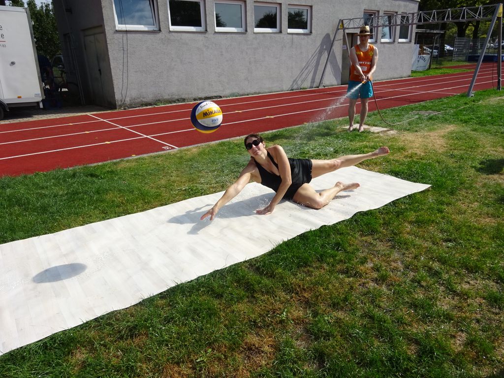 Die zahlreichen Besucher konnten bei Mitmachaktionen der Baseball- und Softball-, Cheerleading-, Fecht-, Leichtathletik und Volleyball-Abteilungen verschiedene Sportarten ausprobieren. Abkühlung gab es für Groß und Klein durch die beliebte Wasserrutsche der Volleyballabteilung oder beim Schwämmeausdrücken bei der Kinderspielstation der Sportkindertagesstätte TVC´le. Wer nach dem ganzen Sport hungrig und durstig war, erhielt Stärkung bei selbstgebackenem Kuchen und leckerem Gegrillten von unseren Cheerleadern. Die Leichtathleten sorgten mit ihrem integrativen Wettkampf für weitere Unterhaltung und stemmten zusätzlich den Verkauf von Softgetränken. Die Bar wurde von unserem Bewegungszentrum bis in die späten Abendstunden betrieben.