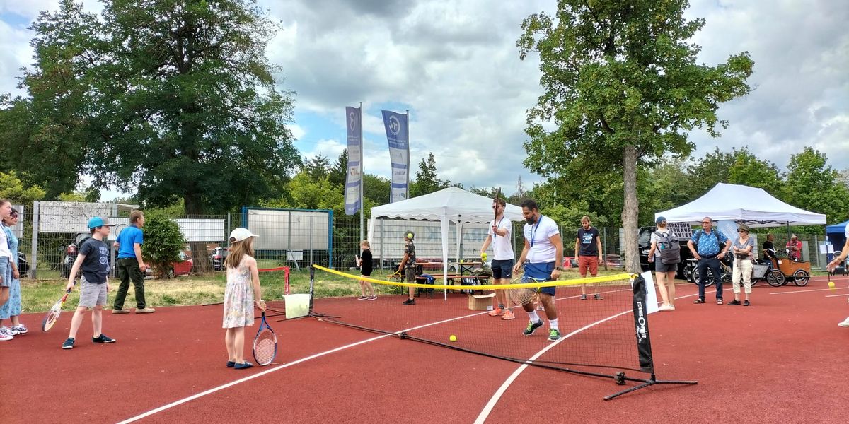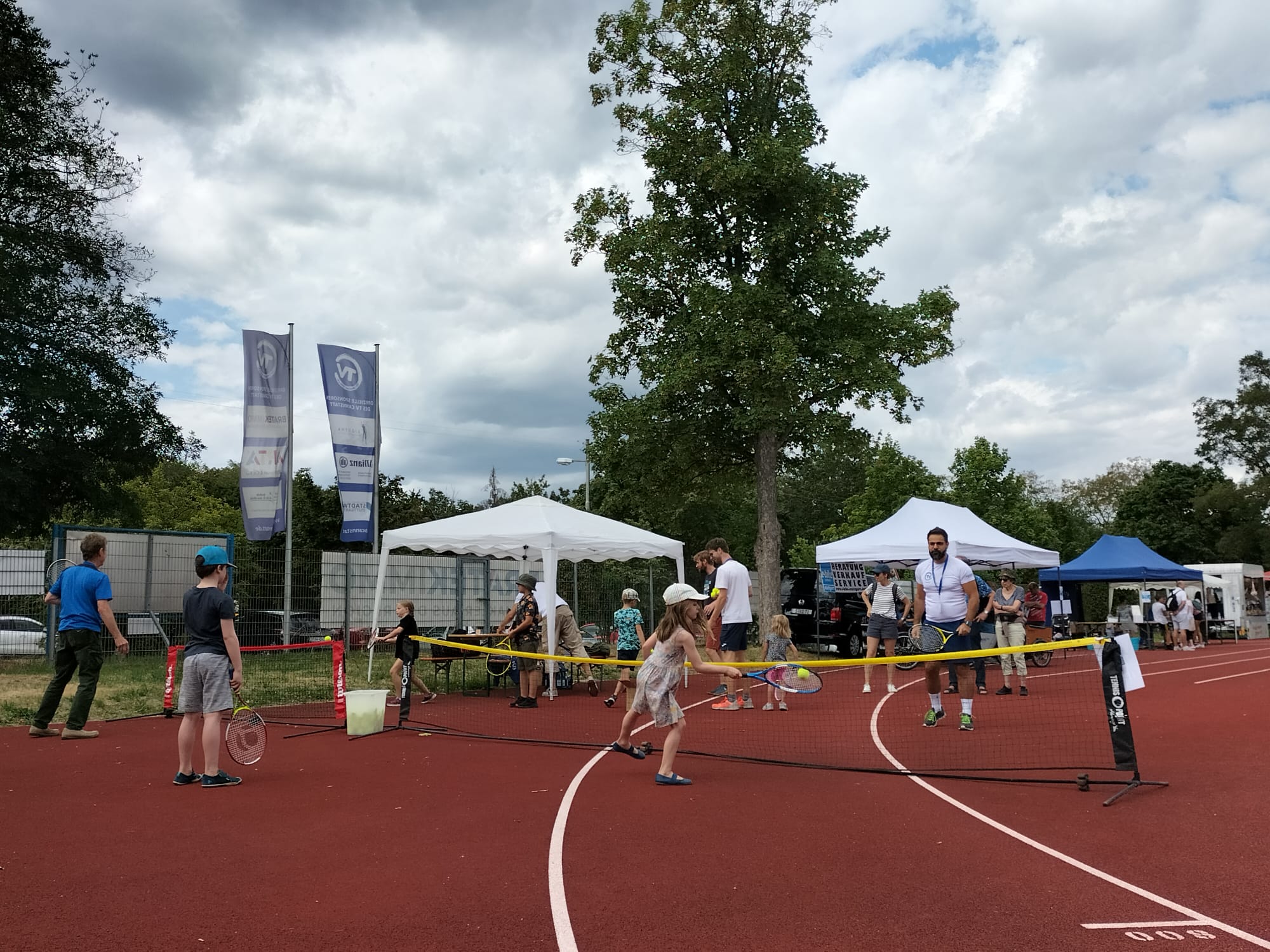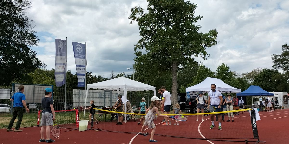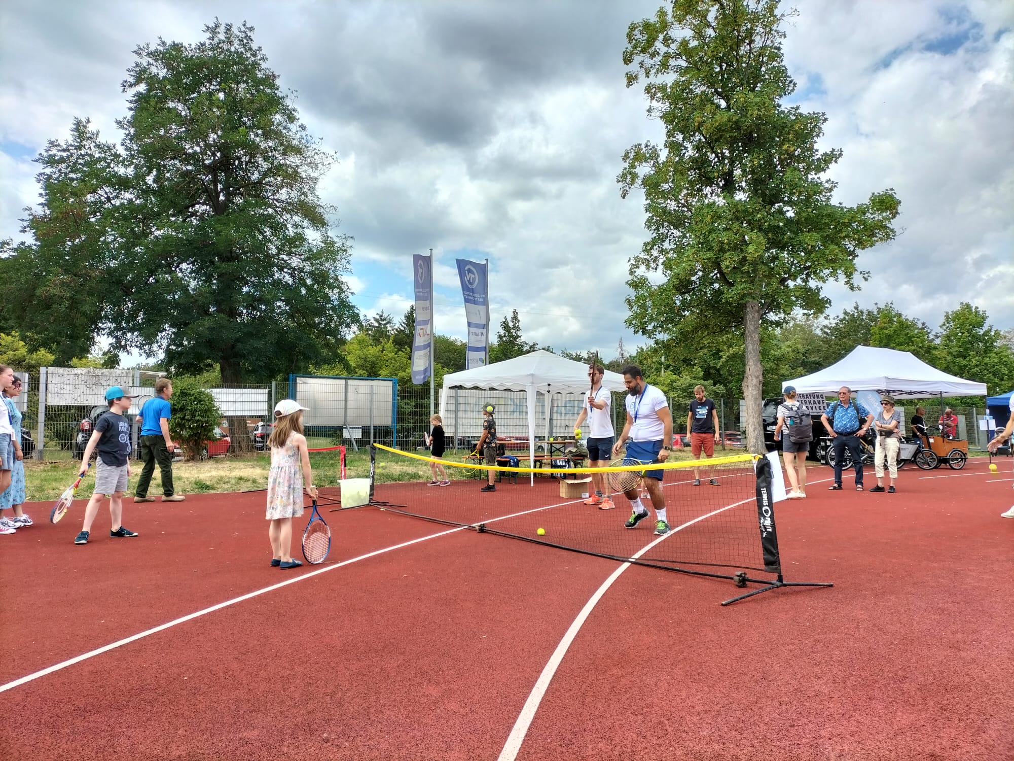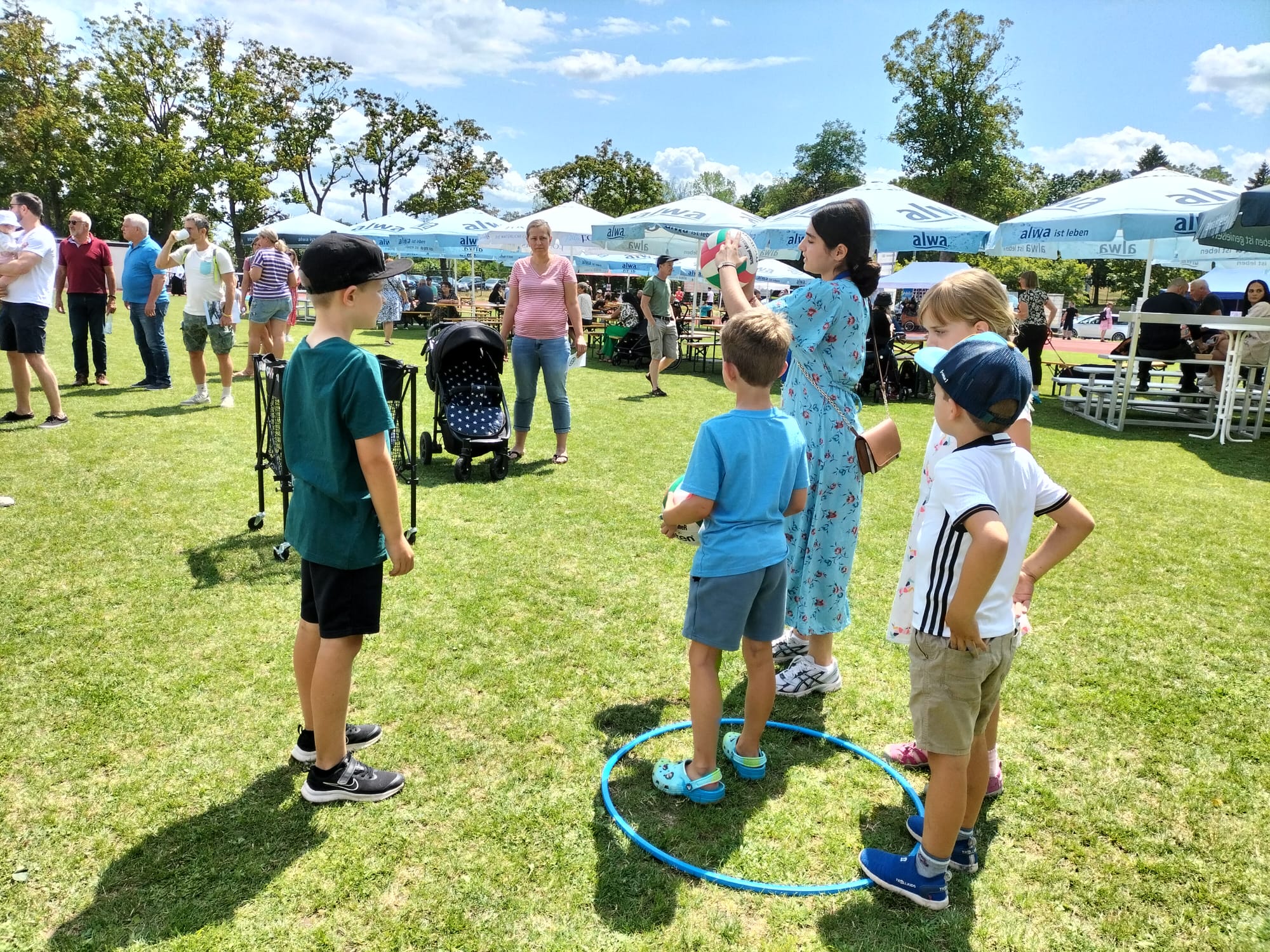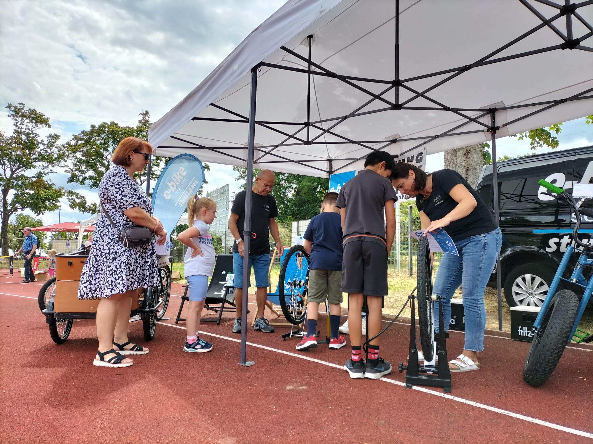 In diesem Jahr waren auch wieder unsere Partner und Sponsoren des TVC auf dem Sommerfest vertreten. Die e-bike schahl OHG war mit ihren coolen Lastenrädern und einer „Pump it up“- Mitmachaktion dabei. Die KBW Technische Services GmbH hielt ein Gewinnspiel und eine herausfordernde Sitzwürfelstapel-Aktion bereit. Die Dienste für Menschen gGmbH informierte Interessierte über ambulante Pflege sowie Tagespflege oder über Pflegeheime. Das Netzwerk „Gemeinsam für ein Demenzfreundliches Bad Cannstatt“, stellte einen Demenz-Simulator auf und wer Lust auf Süßes oder Saures hatte, der war bei der Mandelbrennerei Stuttgart Tobias Wölfle goldrichtig.