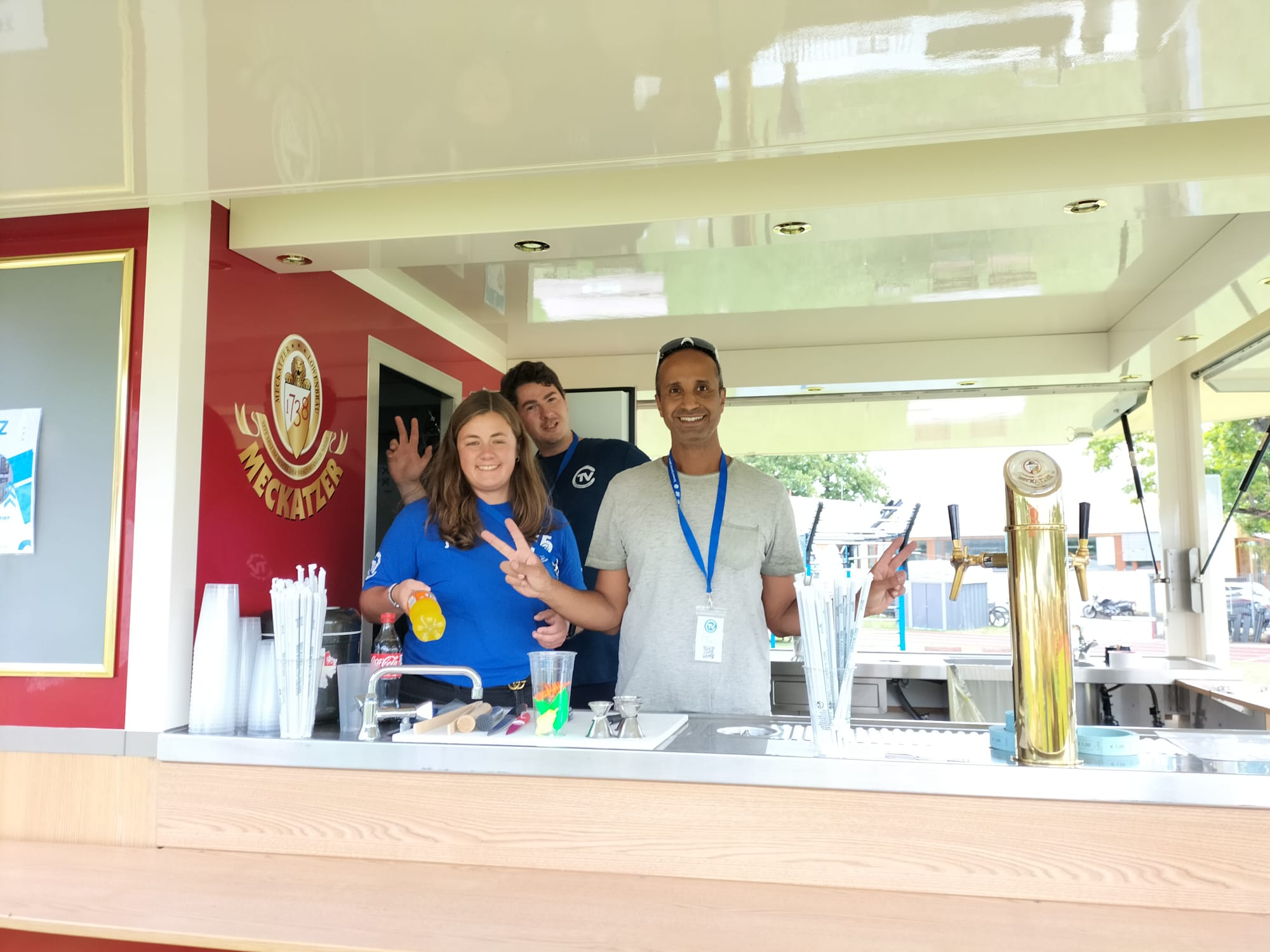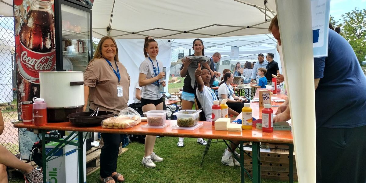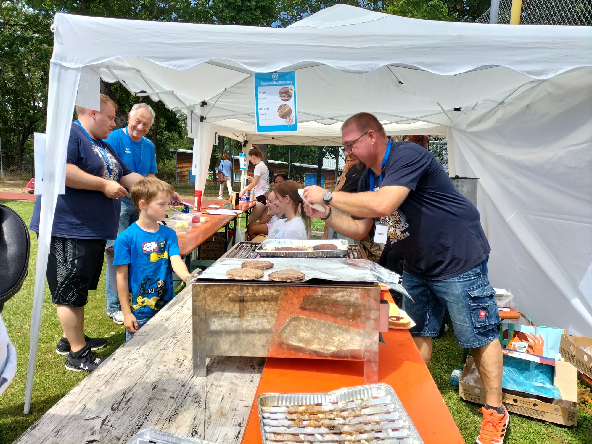 Für das leibliche Wohl wurde durch den Verein und seinen Abteilungen bestens gesorgt. Die Volleyballabteilung und der Elternbeirat servierten Kaffee und Kuchen, währenddessen die Sportkitas frisch gebackene Waffeln im Angebot hatten, für leckere Burger und Hotdogs sorgte die Cheerleading-Abteilung. Die Judoka hatten Pommes und „Rote Wurscht“ im Angebot. Das BZ sorgte mit kühlen Getränken und leckeren Cocktails für Erfrischung und die Kindersportschule move verkaufte neben dem Erlebnisparcours leckeres Wassereis.
