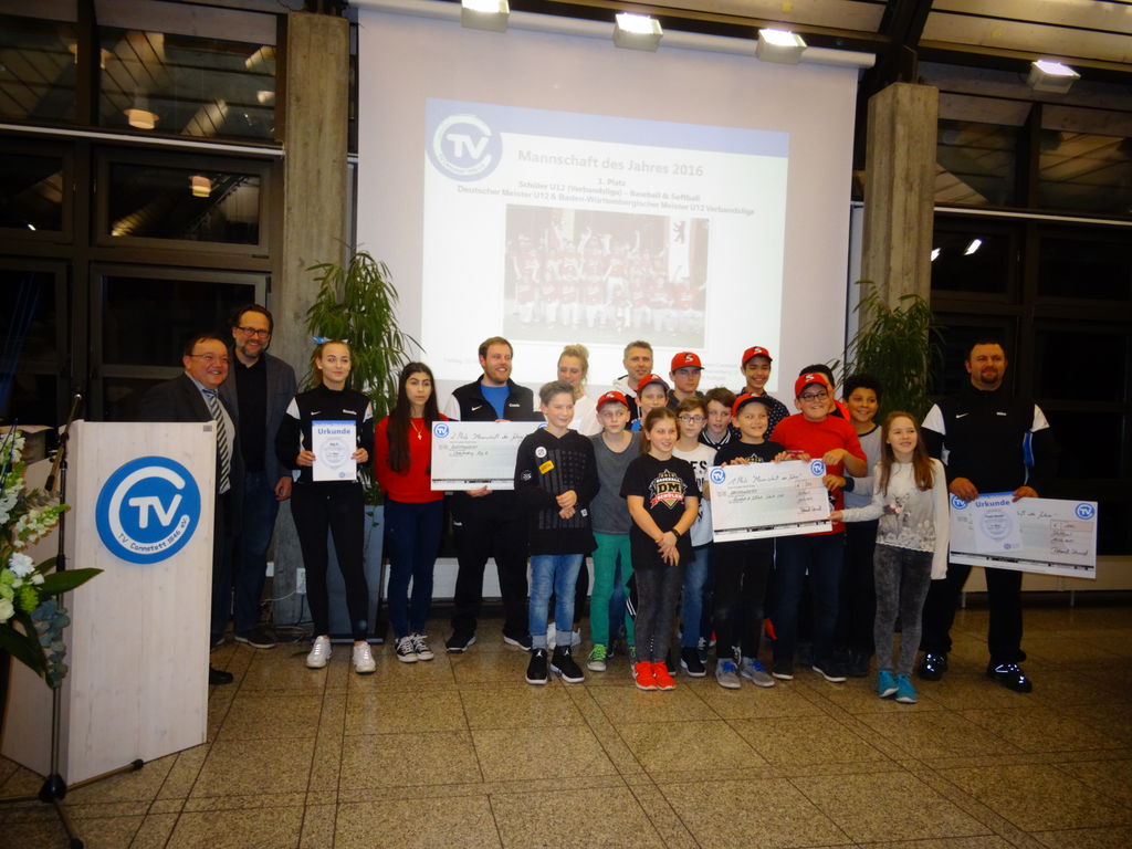 So war es nicht verwunderlich, dass bei den folgenden Ehrungen bis hin zu Deutschen Meistern viel geboten war, sowohl im Kinder- und Jugendbereich, als auch bei den Erwachsenen und Senioren. Die größte Gruppe der Geehrten stellten die Baseballer und Softballer mit ihren verschiedenen Altersgruppen: Hier gab es Baden-Württembergische Meister, Deutsche Meister und Pokalsieger in verschiedenen Altersgruppen.