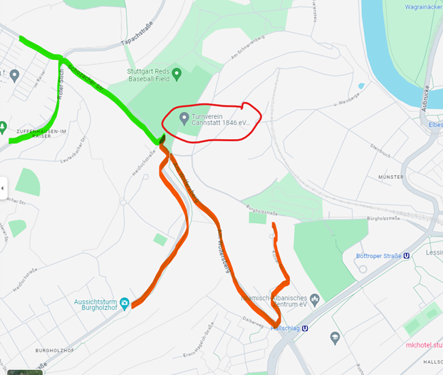 - Die Buslinie 52 wird, aus der Tapachstraße kommend, über den Roten Stich zum Pragsattel geführt. Die Haltestelle Burgholzhof wird in diesem Zeitraum nicht angefahren.