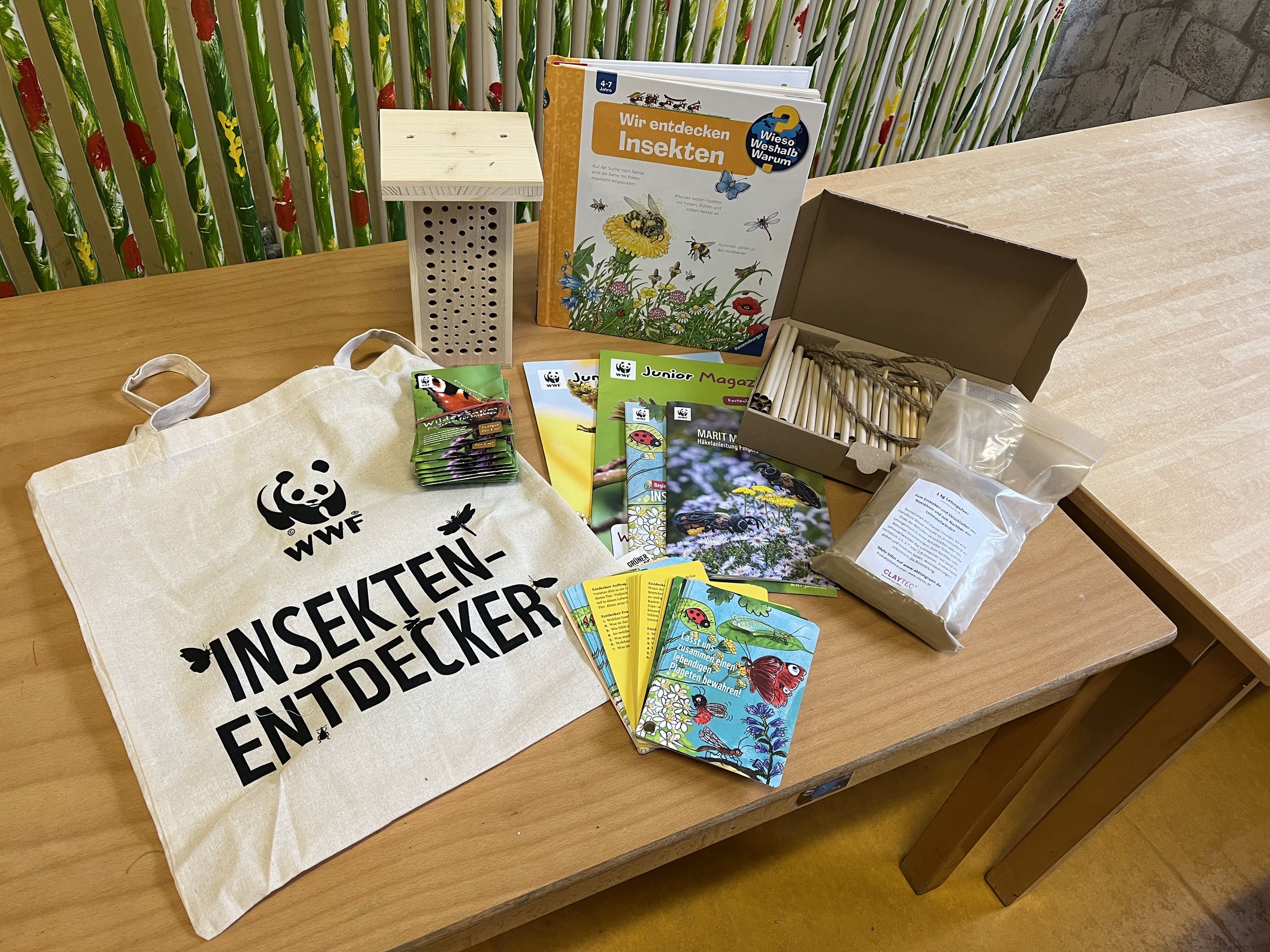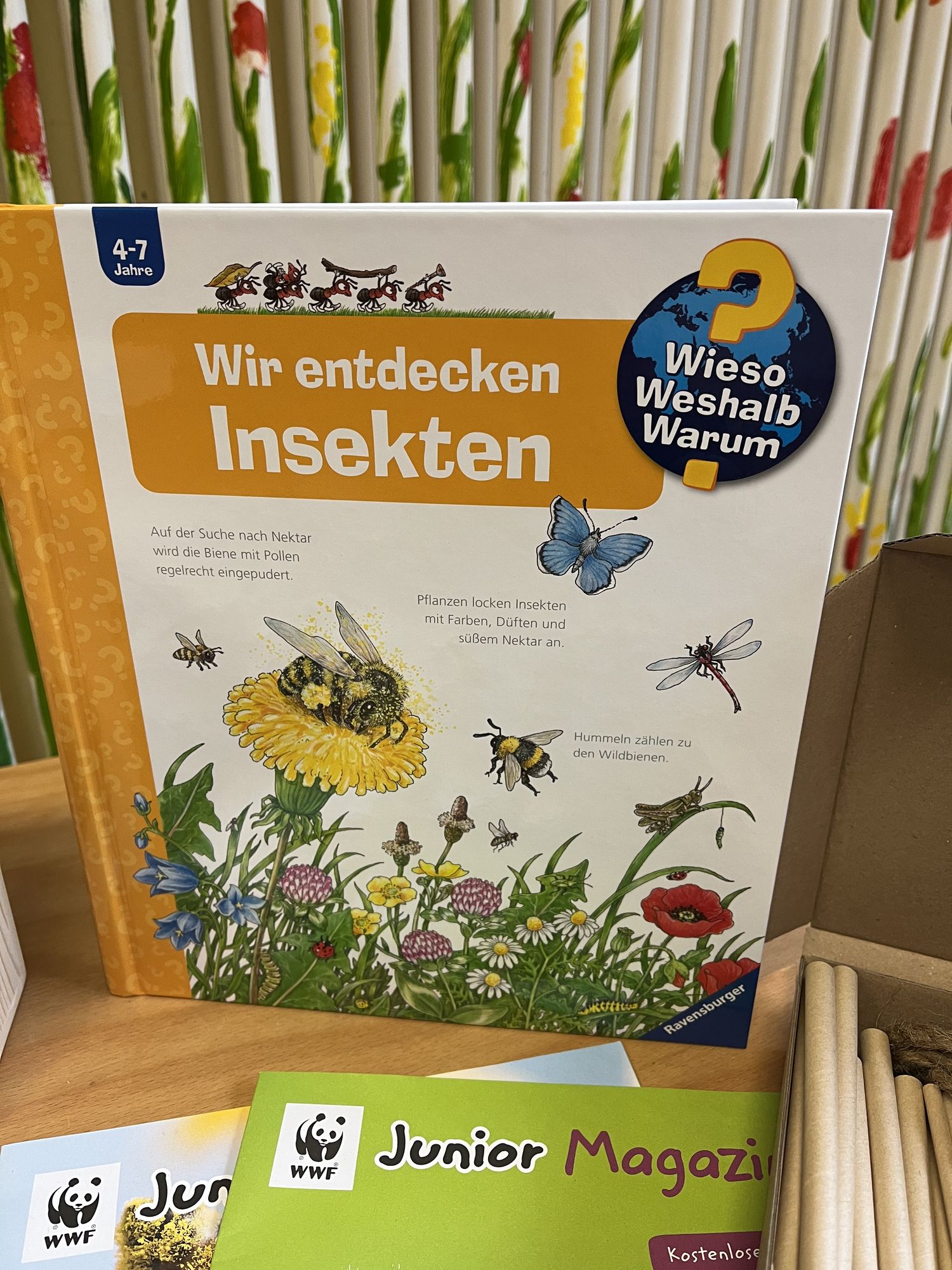 Wir haben an einem Gewinnspiel der Sparda- Bank Baden-Württemberg und dem WWF teilgenommen und gewonnen. Die Kita hat zwei tolle Insektenentdecker Pakete bekommen. In den Paketen war ein Nistblock, Wildblumensamen zum gemeinsamen aussäen, Material für das erbauen von Dosen Nistkästen, Bücher und vieles mehr. Wir möchten mit diesen Entdeckerpaketen auf dem Kita Gelände Insekten ansiedeln, um diese das ganze Jahr beobachten zu können. Zudem erfreuen wir uns über neu entstehende bunte Blumenwiesen. Die Kinder können es kaum erwarten los zu legen und freuen sich sehr über diesen tollen Gewinn.